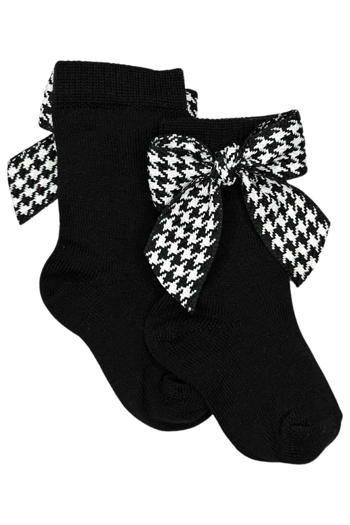 جوارب طويلة للركبة بفيونكة سوداء بنقشة مربعات