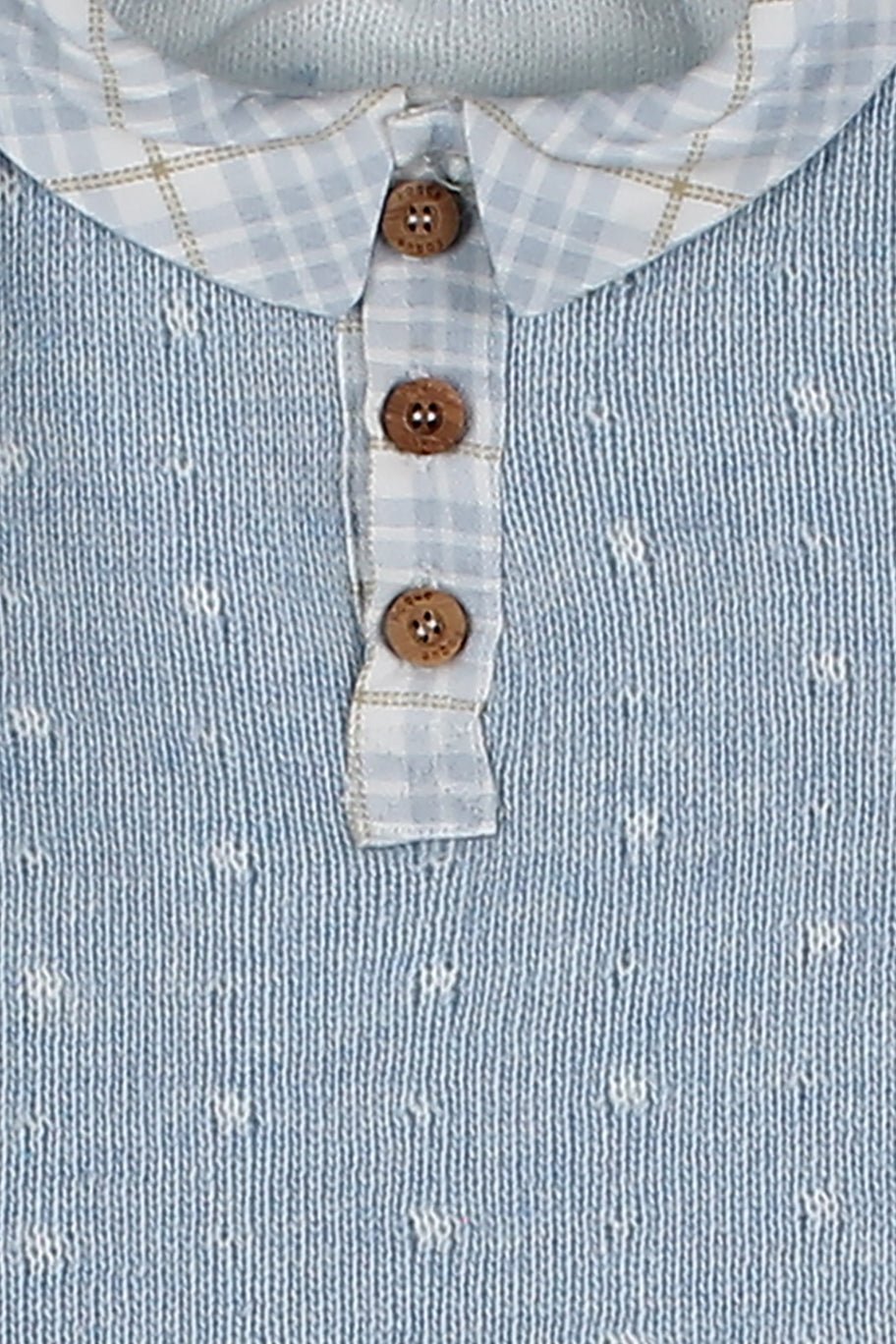 بلوزة "إيدي" تيدي محبوكة باللون الأزرق السماوي وشورت منقوش