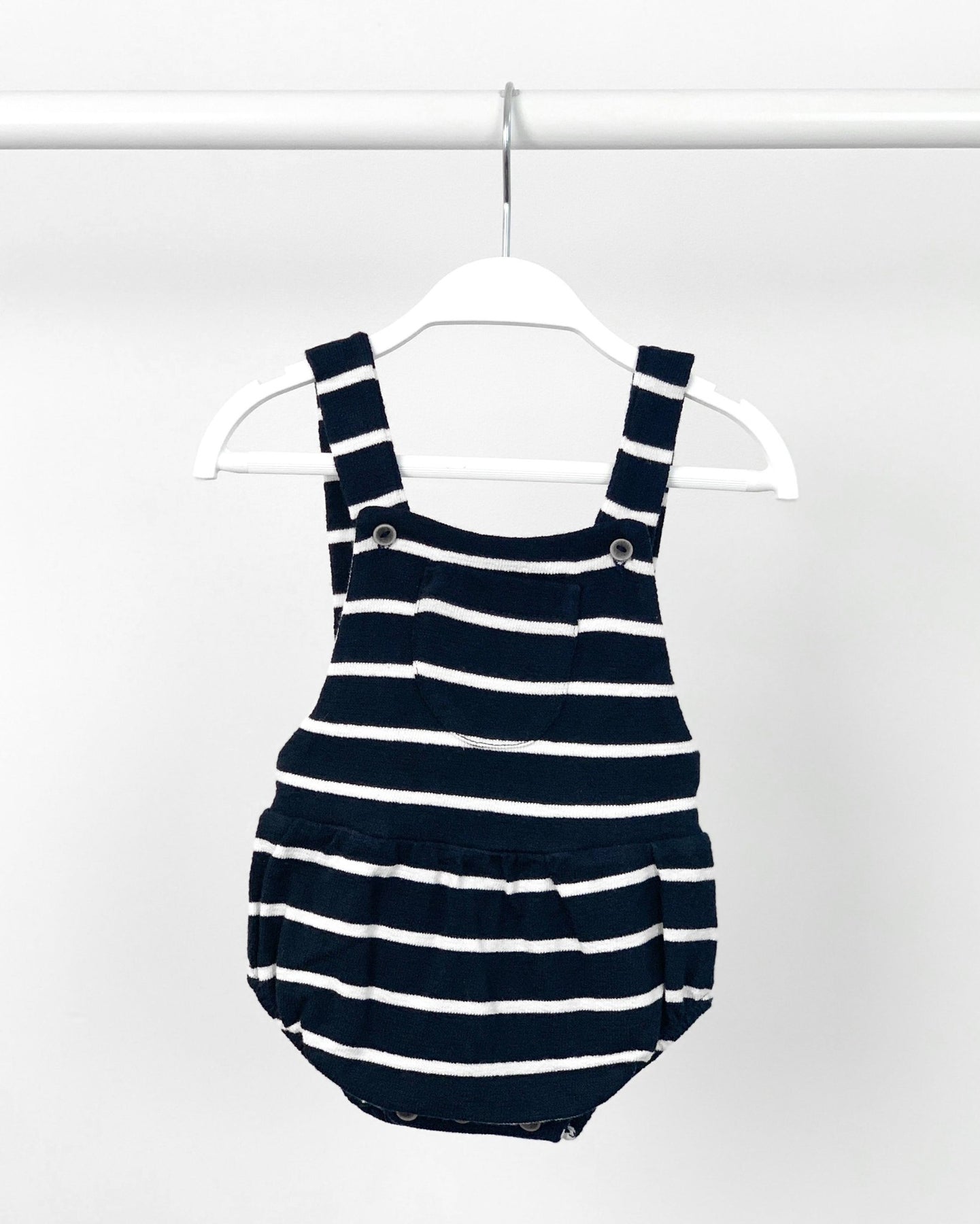 Babidu Terry Towelling Navy Striped Dungaree Romper - Millie and John