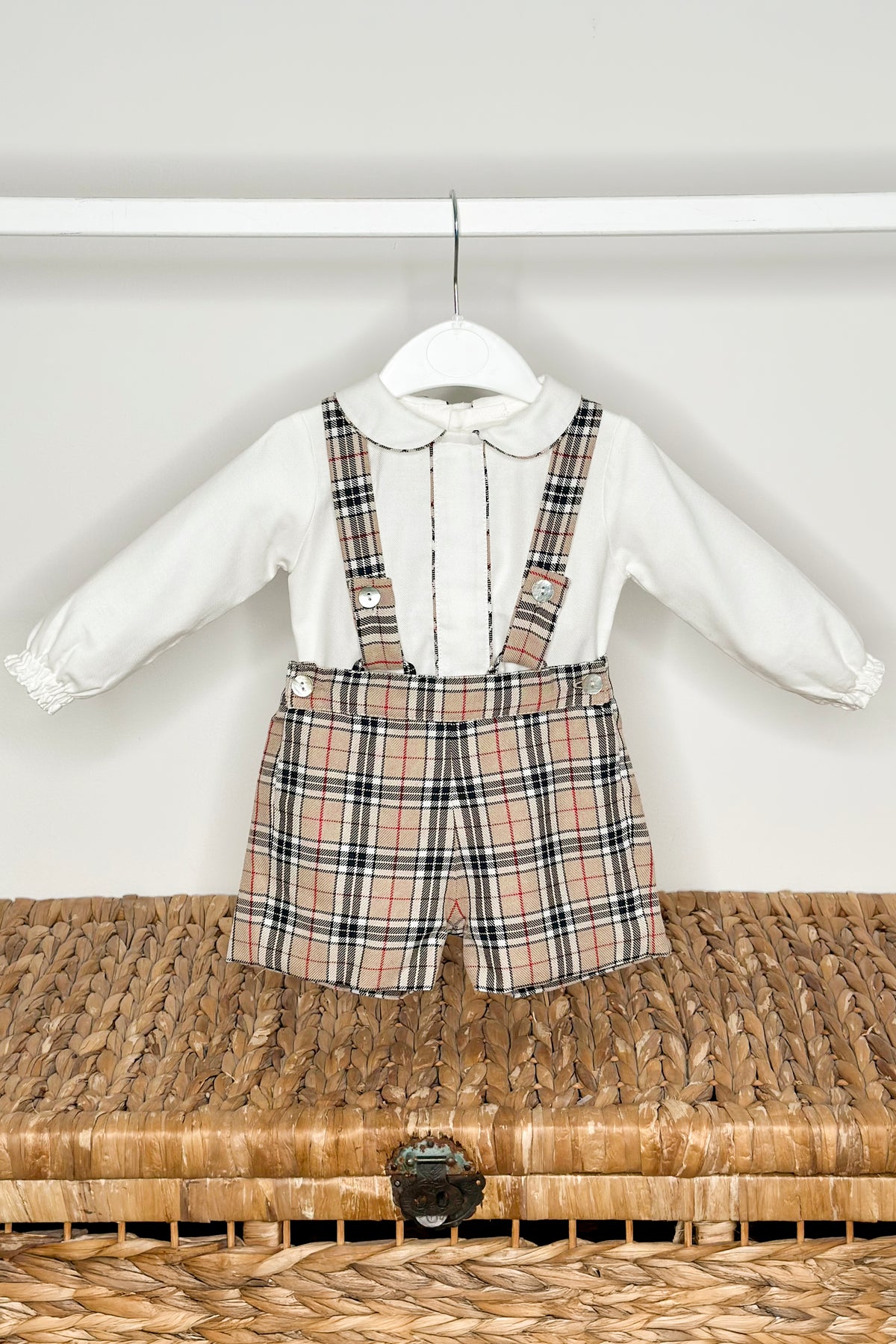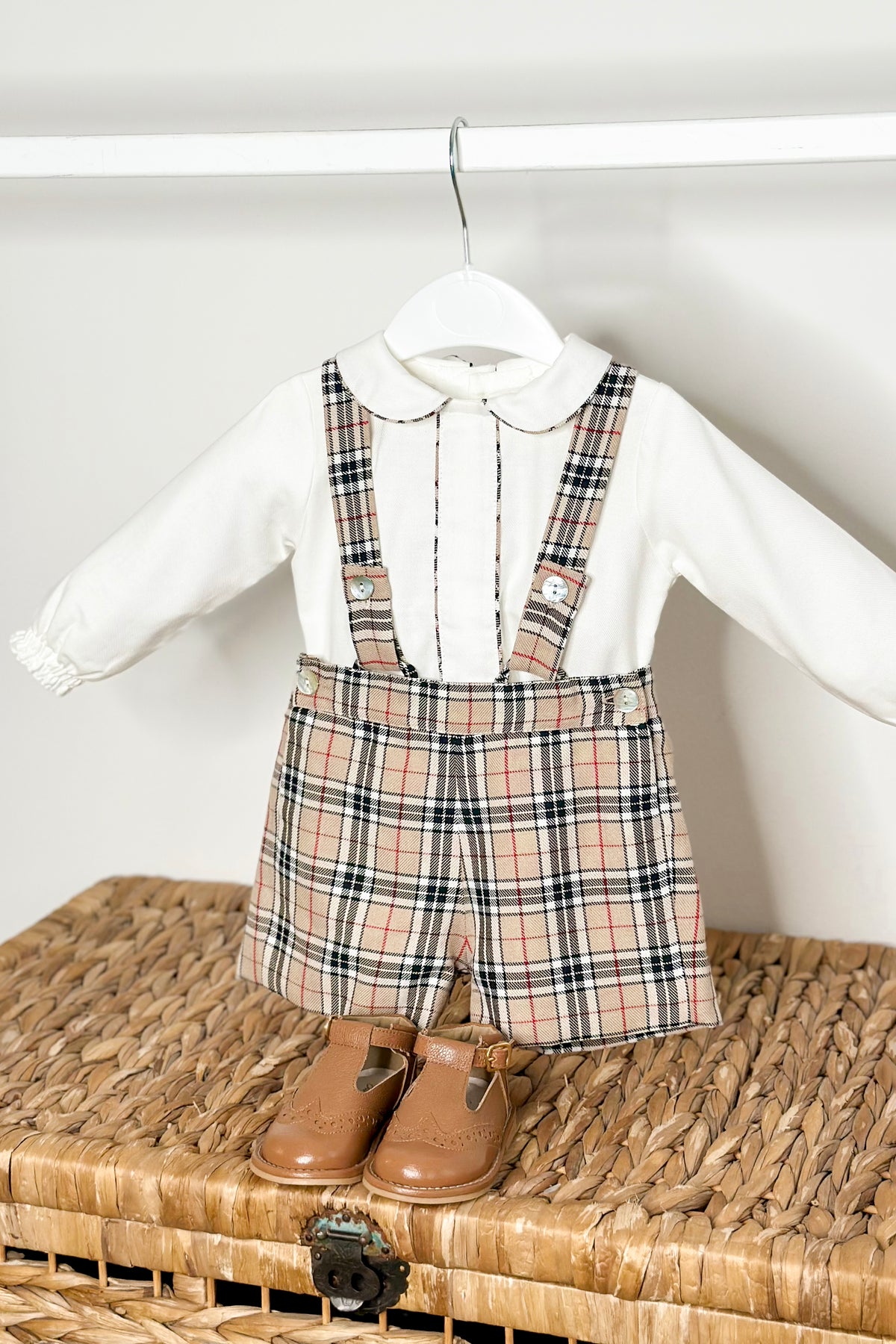 "Barnabus" Beige Tartan Shirt & Shorts with Braces