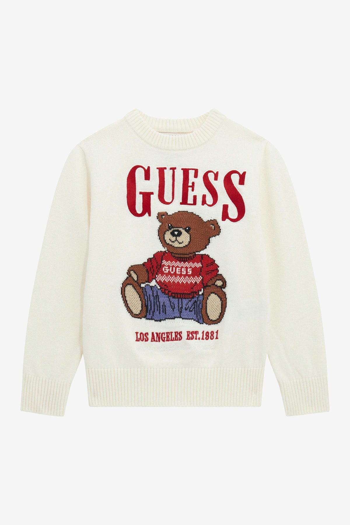 GUESS® Kids "Rudy" Ivory Festive Bear Knit Jumper - Millie and John