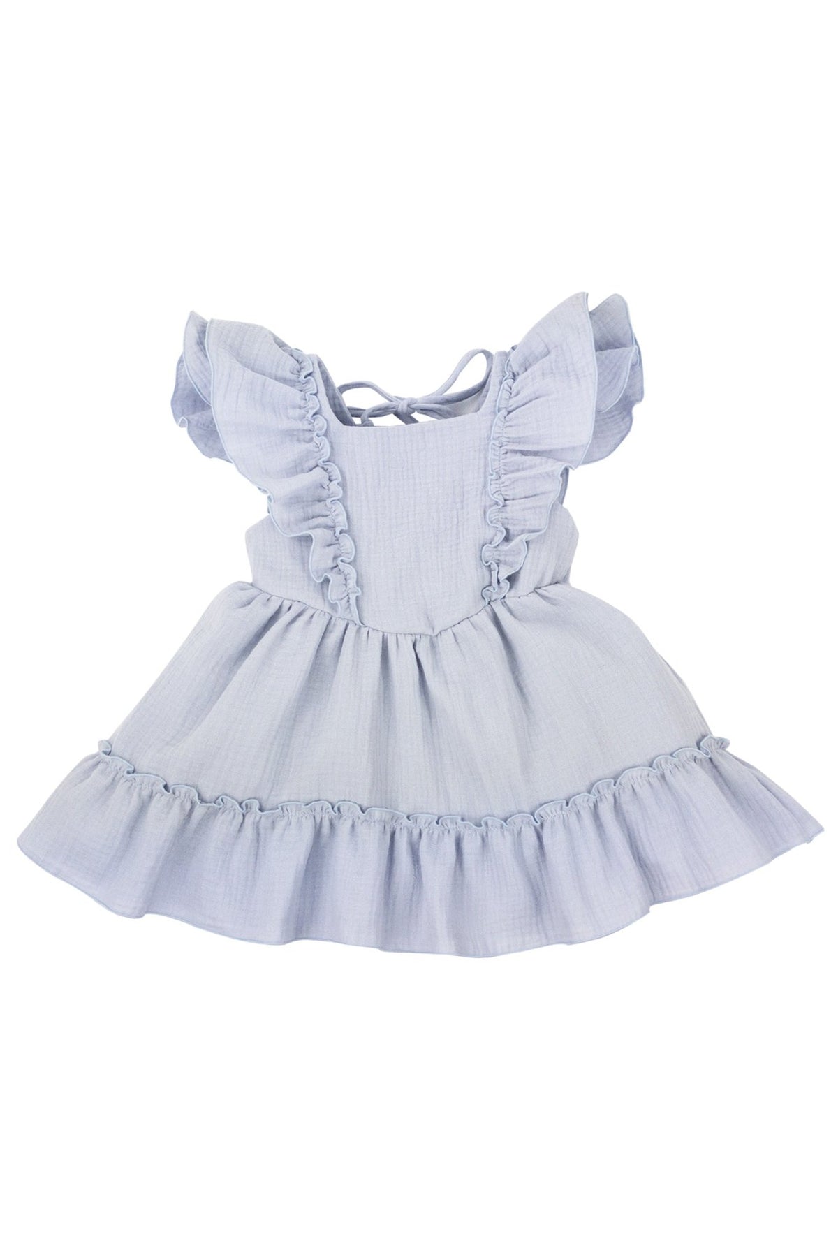 فستان "مالي" من القطن العضوي باللون الأزرق الفاتح برباط