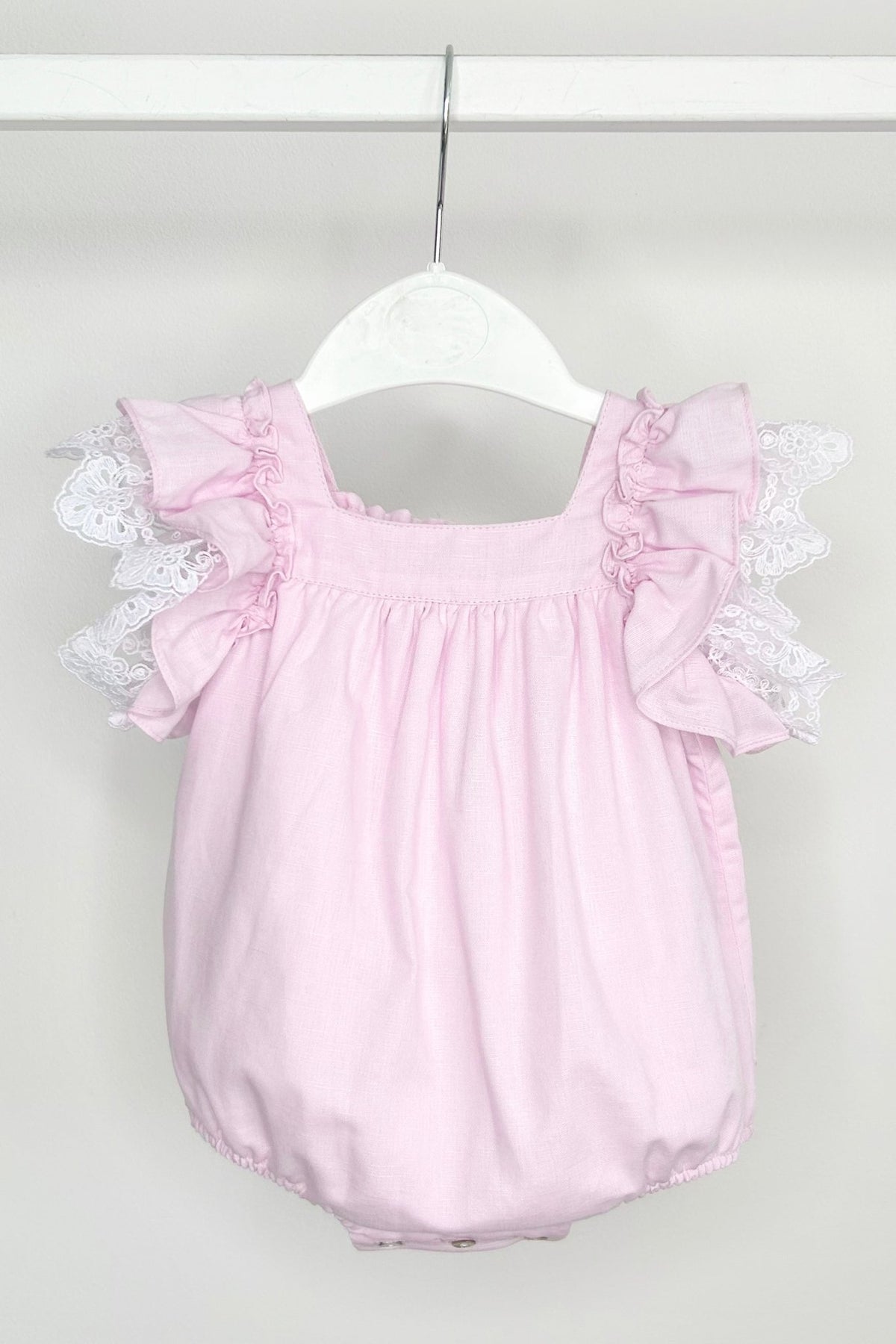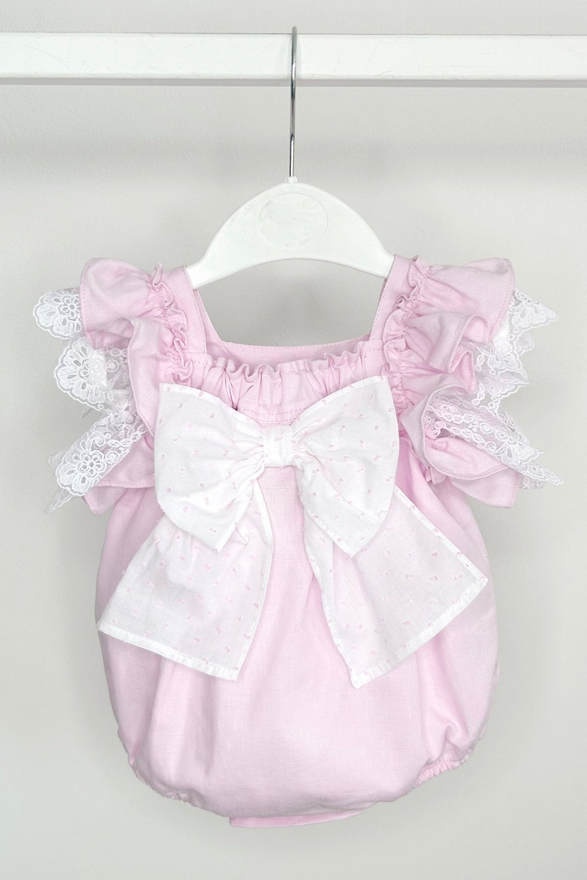 هذا الرومبر الساحر من فوفيت × بي شيك ناعم، مرح، وأنيق. مصنوع من قطن أرجواني فاتح منسوج بملمس يشبه الكتان، ويتميز بلمسات دانتيل بيضاء رقيقة على الأكمام لإضفاء لمسة أنثوية. الرومبر مزين بعقدة كبيرة منقطّة بالأبيض والأرجواني من الخلف، مما يضفي عليه لمسةً من الأناقة. مع لوحة خلفية وأرجل مرنة لملاءمة مريحة، يسهل ارتداء الرومبر ومثالي للأيام الدافئة. أزرار تثبيت فاخرة من عرق اللؤلؤ الطبيعي على العكاز تجعل ارتداءه سهلاً، والرومبر مبطن لمزيد من الراحة.