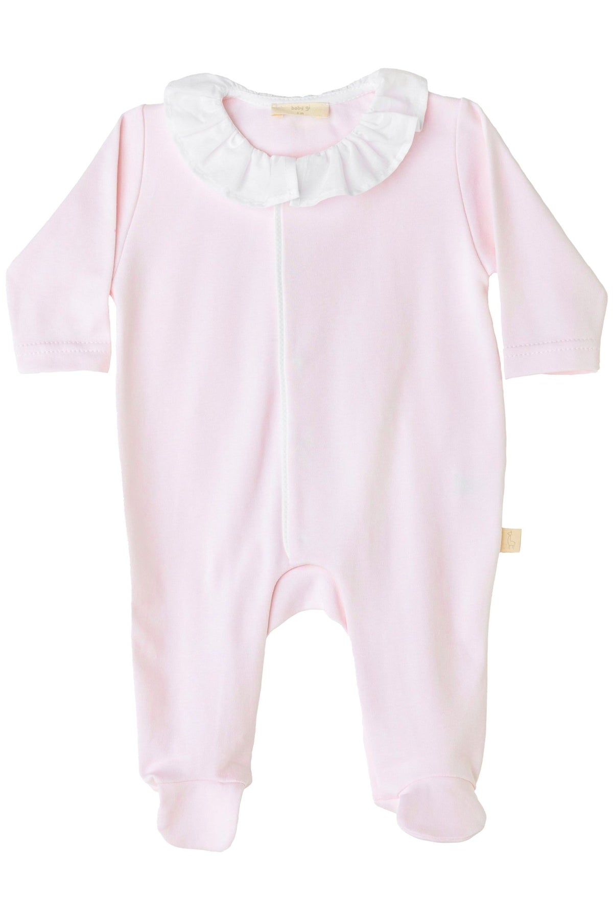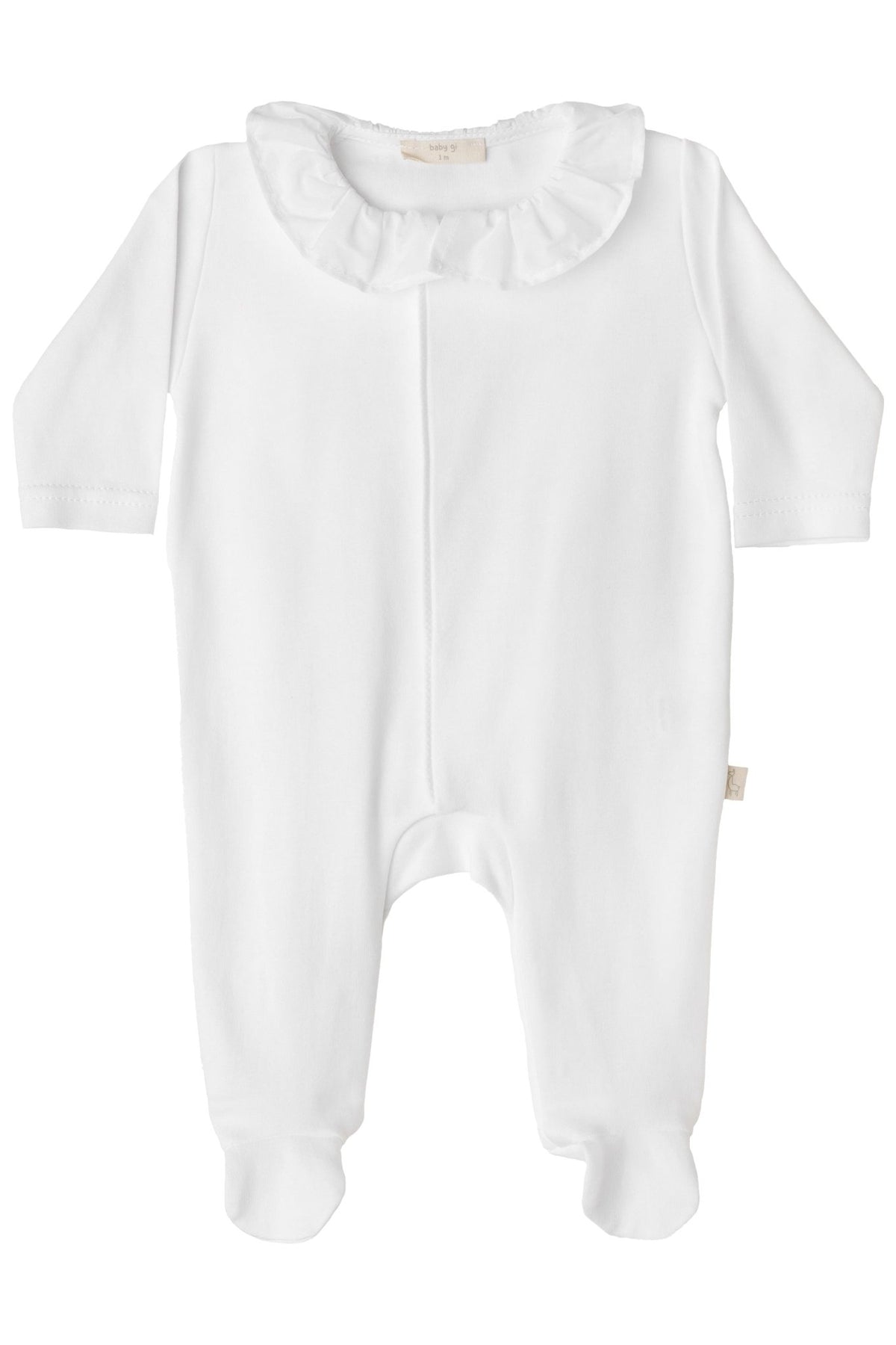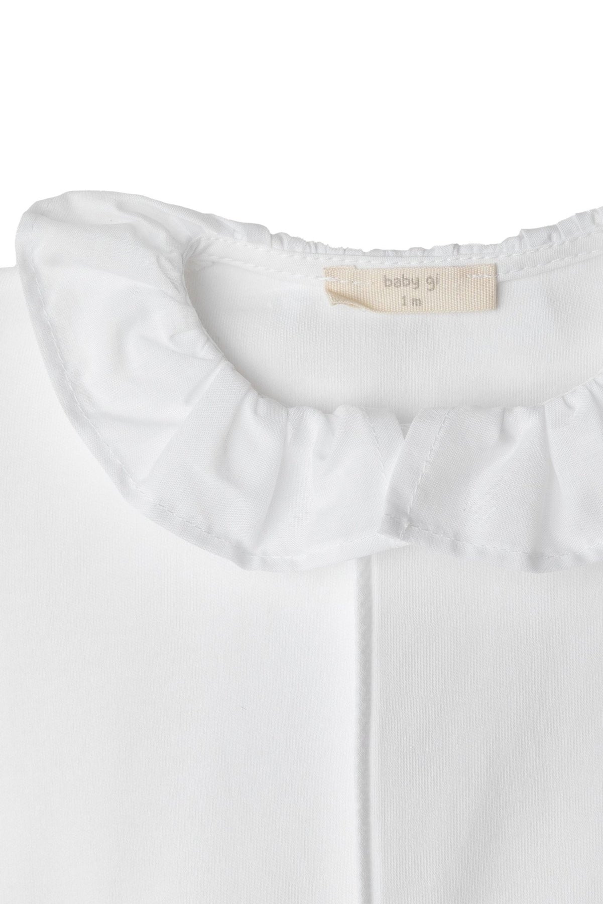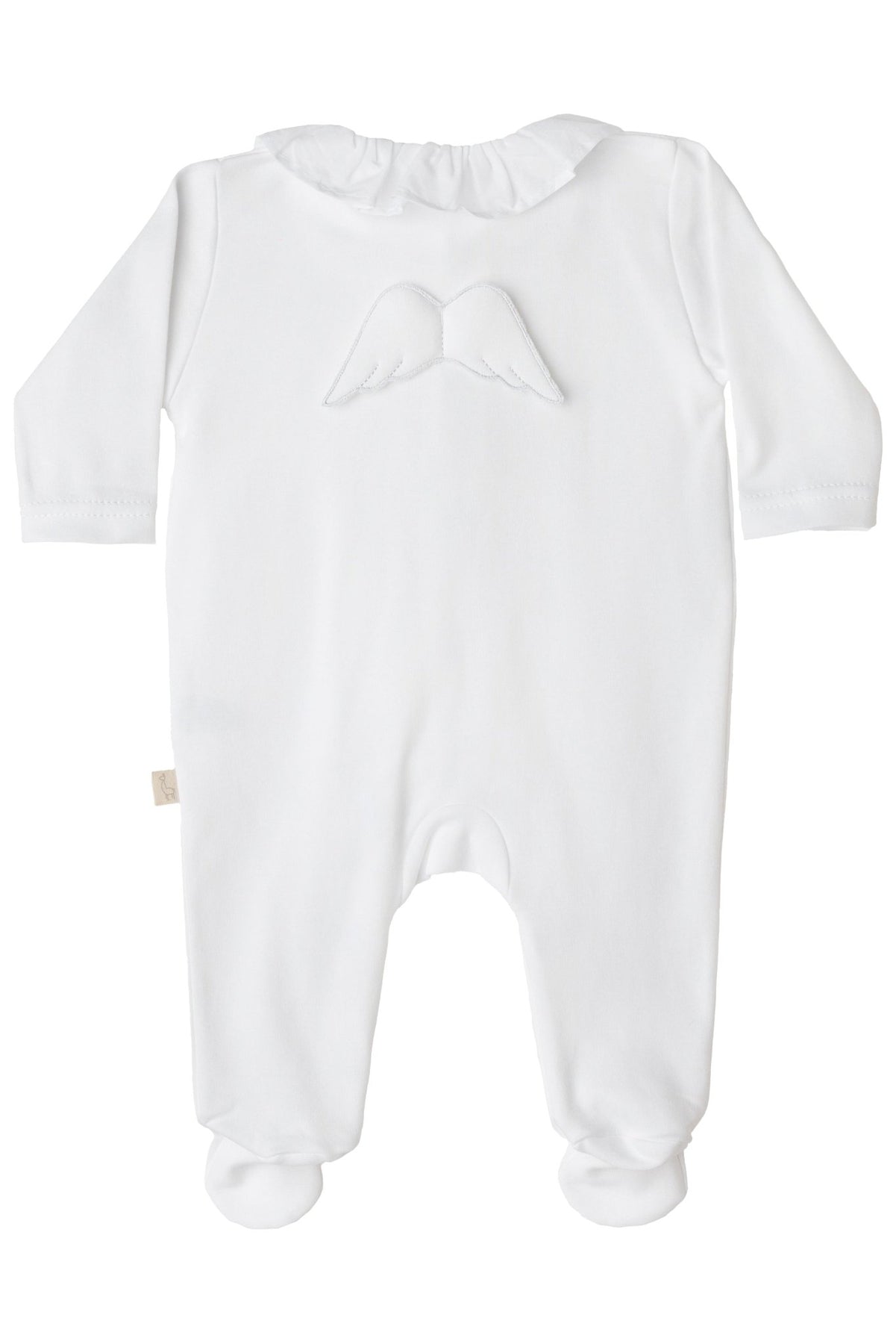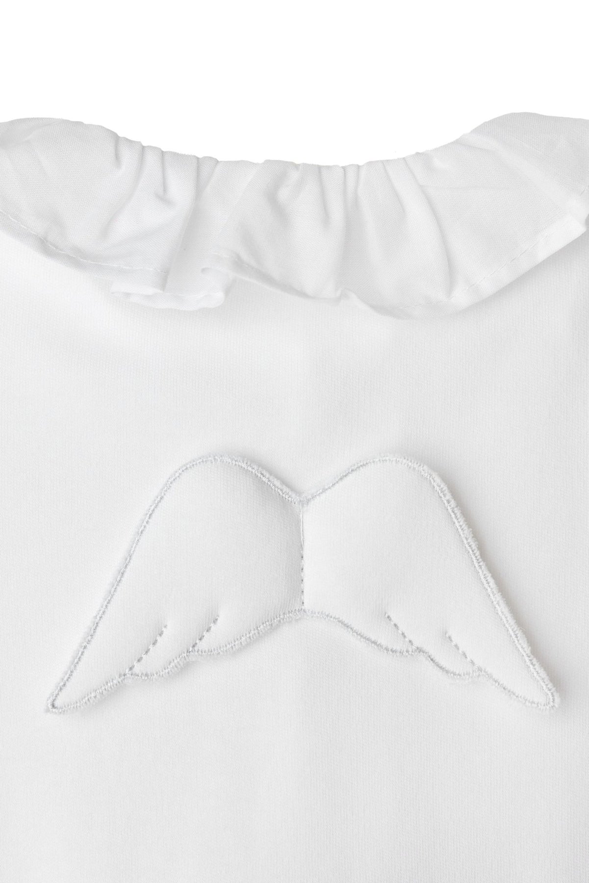 بدلة نوم قطنية خفيفة الوزن وناعمة للغاية مع طوق كشكش قطني منسوج لطيف للغاية وأجنحة ملاك مبطنة في الخلف من العلامة التجارية البرتغالية Baby Gi .