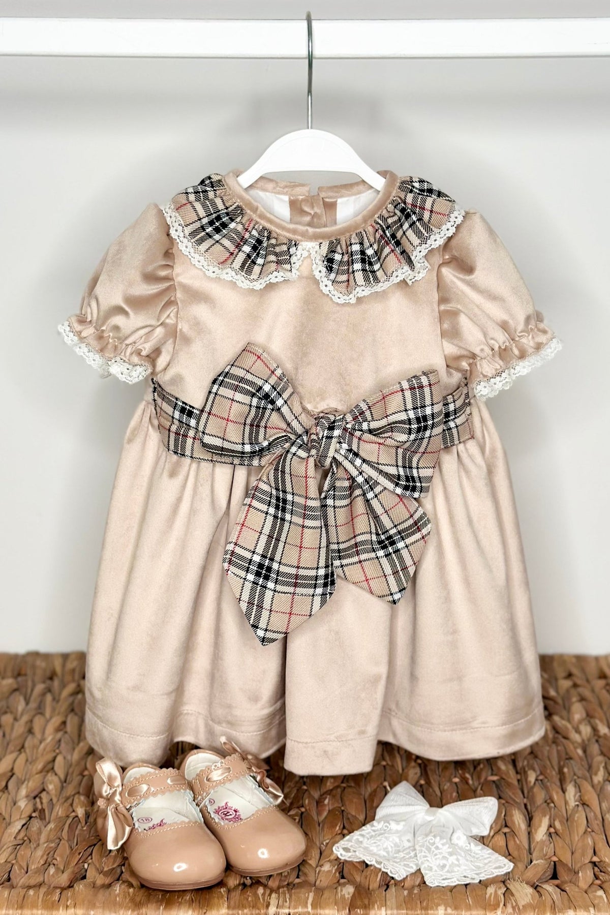 Fofettes x Be Chic "Helena" Beige Tartan Velvet Dress - Millie and John
