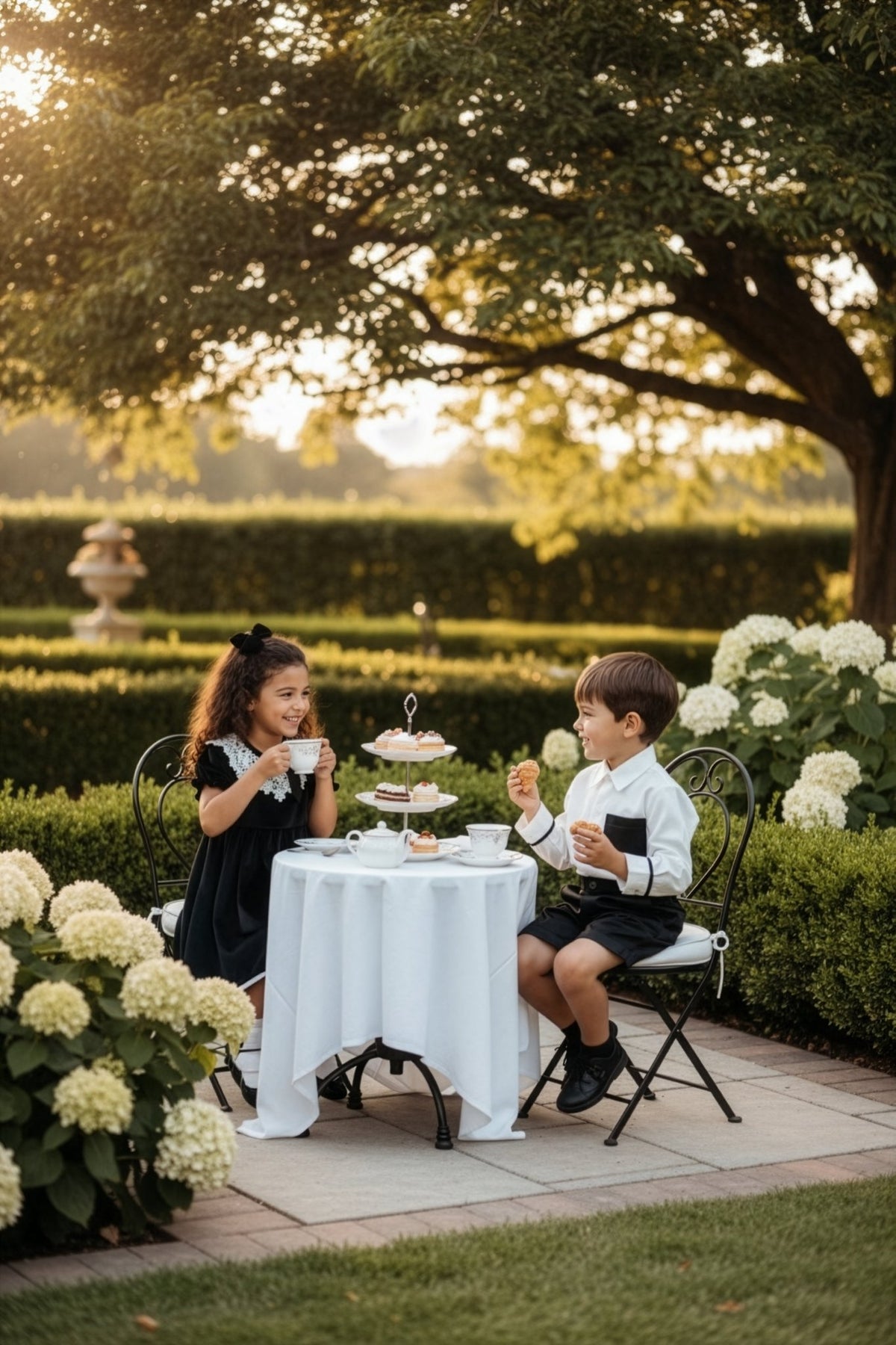Classic, graceful, and made for making memories – the Sabrina dress by Fofettes x Be Chic embodies pure winter elegance. Crafted from the softest black velvet, this mid-weight design drapes beautifully while remaining gentle on delicate skin. The neckline is adorned with intricate white floral lace and a black satin bow topped with a gold-tone faux-pearl button – a detail that elevates the entire look. Perfect for Christmas gatherings and family portraits, it’s finished with elasticated puff sleeves, a lined skirt for comfort, and exquisite mother-of-pearl button fastenings down the back.