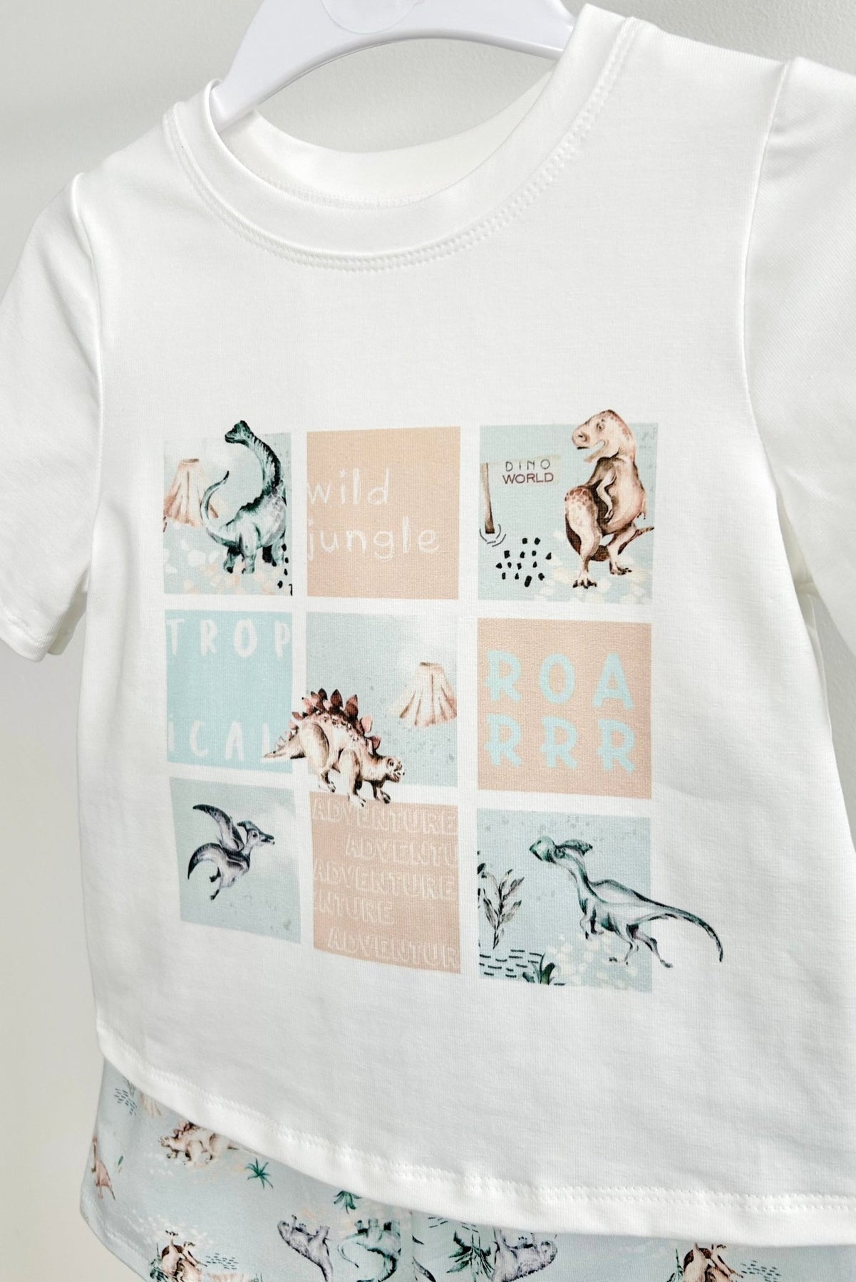 تيشيرت وشورت "يوهانس" ديناصور عاجي وأزرق