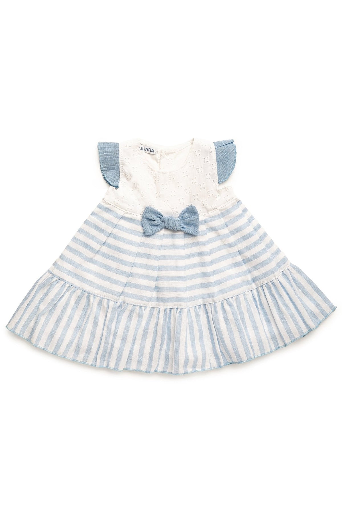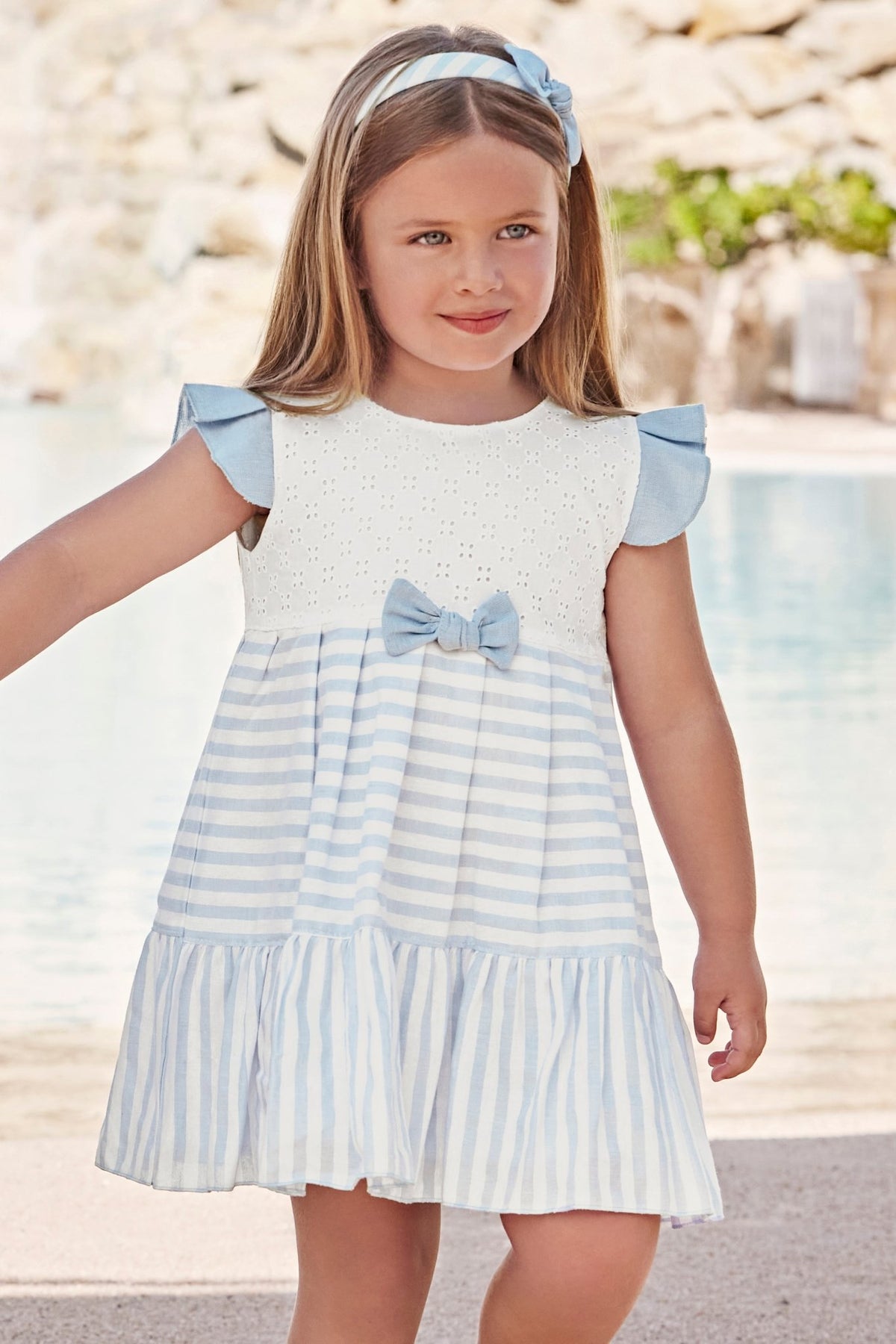 فستان صيفي أنيق من جوليانا ، يجمع بين التطريز الإنجليزي الكلاسيكي وخطوط ناعمة باللونين الأزرق السماوي والأبيض. أكمامه الرقيقة المنسدلة وتفاصيل الفيونكة تُضفي عليه لمسة من السحر، بينما تُضفي التنورة الواسعة بحاشية مكشكشة لمسةً أنيقة. هذا الفستان القطني المنسوج خفيف الوزن، مبطن بالكامل لتوفير الراحة، مثالي للنزهات في الأجواء الدافئة. يُغلق بأزرار لؤلؤية على الظهر لسهولة الارتداء، وهو قطعة أساسية في خزانة ملابس الأطفال الصغار هذا الموسم.