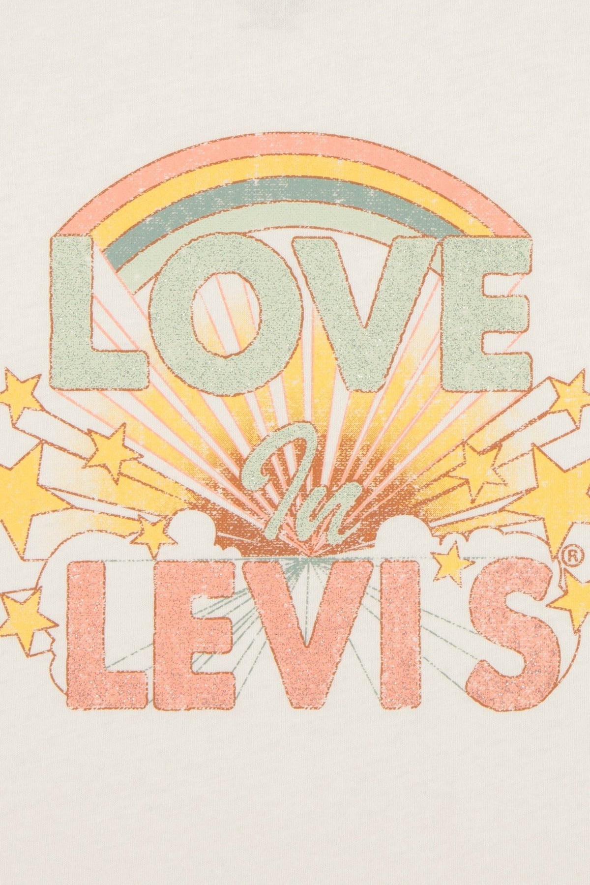 أضف لمسة من سحر الماضي مع تيشيرت غاردينيا لوف من ليفيز ! يتميز هذا التيشيرت الناعم والخفيف بطبعة قوس قزح ونجوم لامعة مستوحاة من الطراز القديم ، وهو مثالي للأطفال الصغار الذين يعشقون اللمعان. قميص ممتع وحنين لمحبي الموضة الصغار!