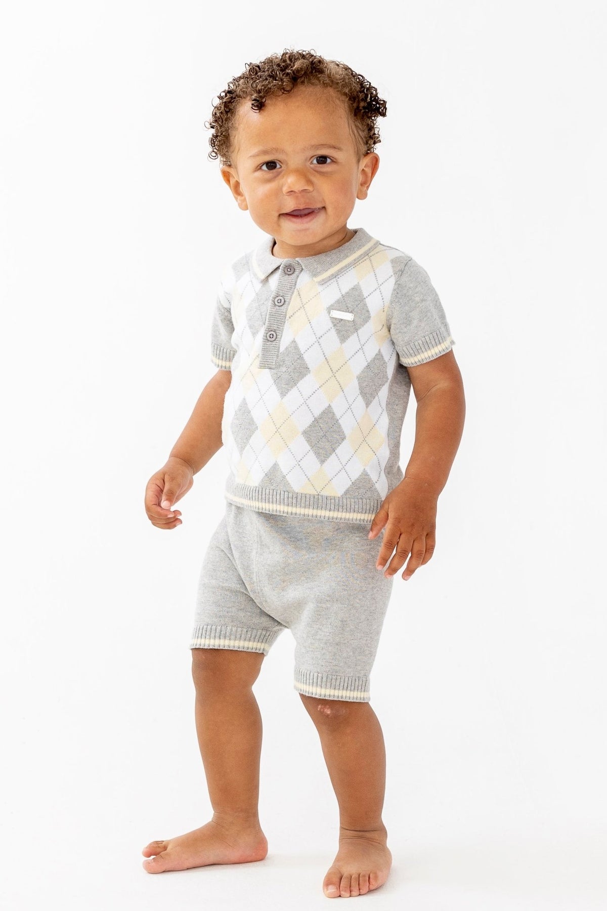 قميص بولو وشورت "تشارلي" رمادي وليموني محبوك