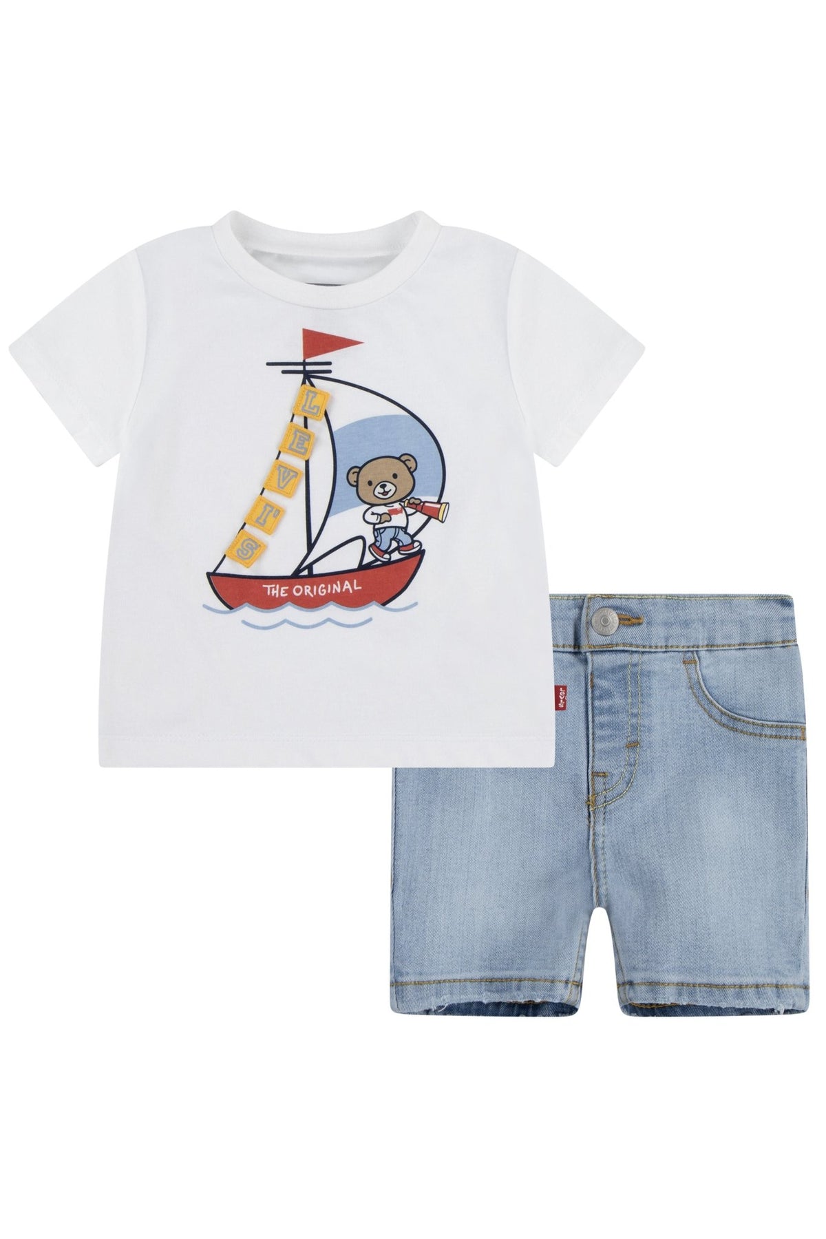 Levi's® White Sailor Bear T-Shirt & Denim Shorts - Millie and John