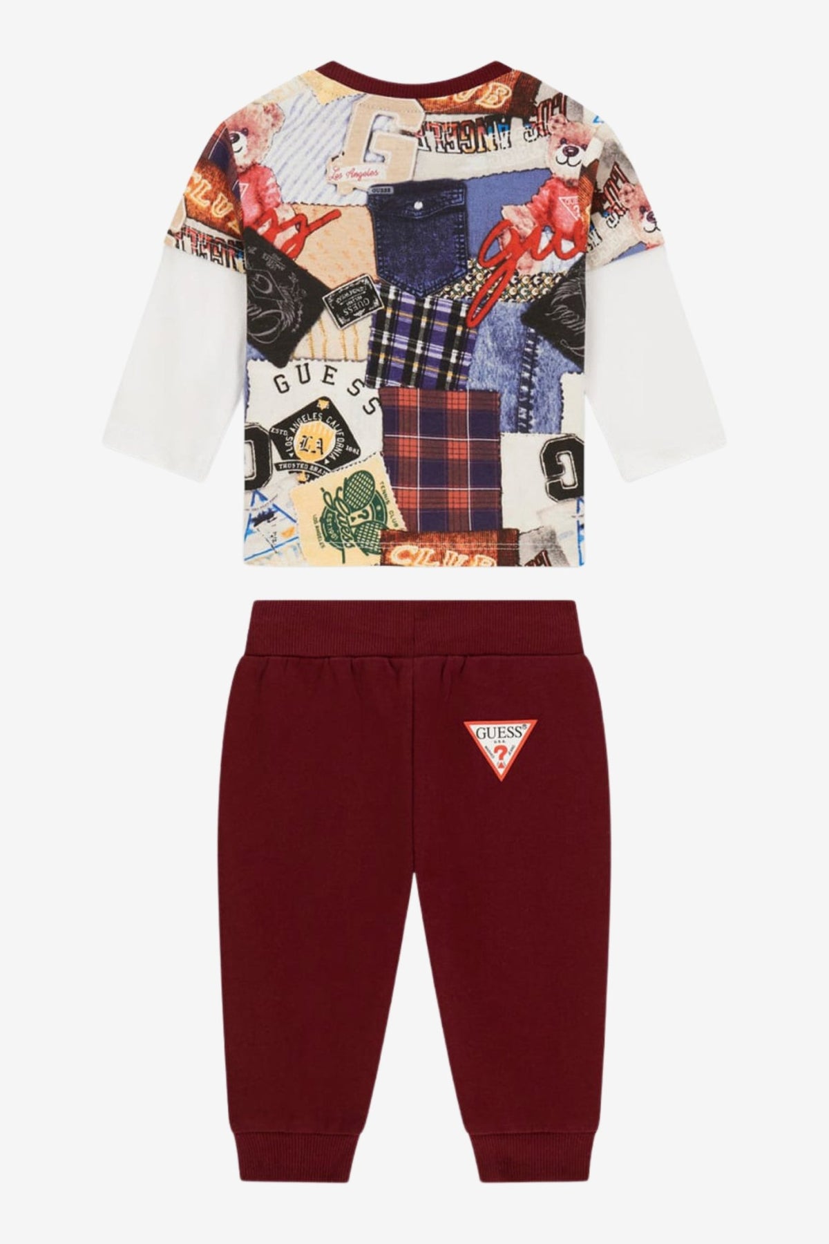 For the little one who’s always on the move – this two-piece GUESS® Kids set blends comfort with a splash of cool, retro-inspired style. The soft collage-print top is full of personality, with playful teddy details, vintage patches, and the iconic red triangle logo front and centre. The layered-look sleeves make it easy to dress your child in one go, keeping them cosy without extra bulk.