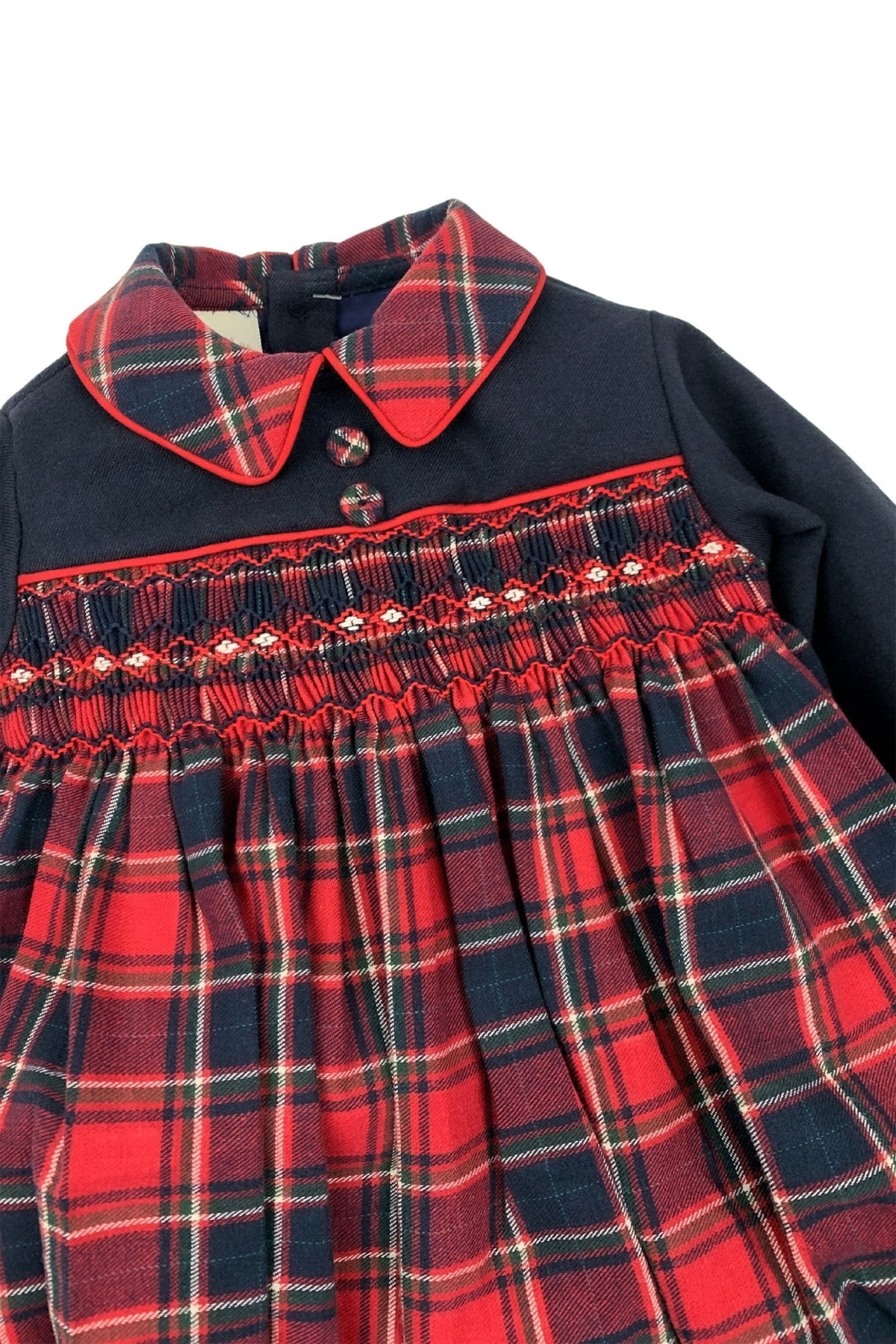Pretty Originals "Celyn" Navy & Red Tartan Smocked Romper - Millie and John