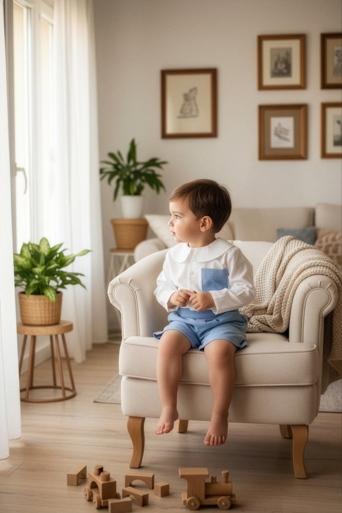 رومبر دانغري للأطفال من ماركة بورو ميمو البرتغالية، للجنسين. رومبير دانغري عاجي سميك وناعم من قماش بوكليه، مزود بأزرار فاخرة من عرق اللؤلؤ الطبيعي على مقدمة الحمالات والعكاز، مما يجعل ارتداءه وتغيير حفاضه في غاية السهولة. مثالي للفتيات والأولاد الصغار.