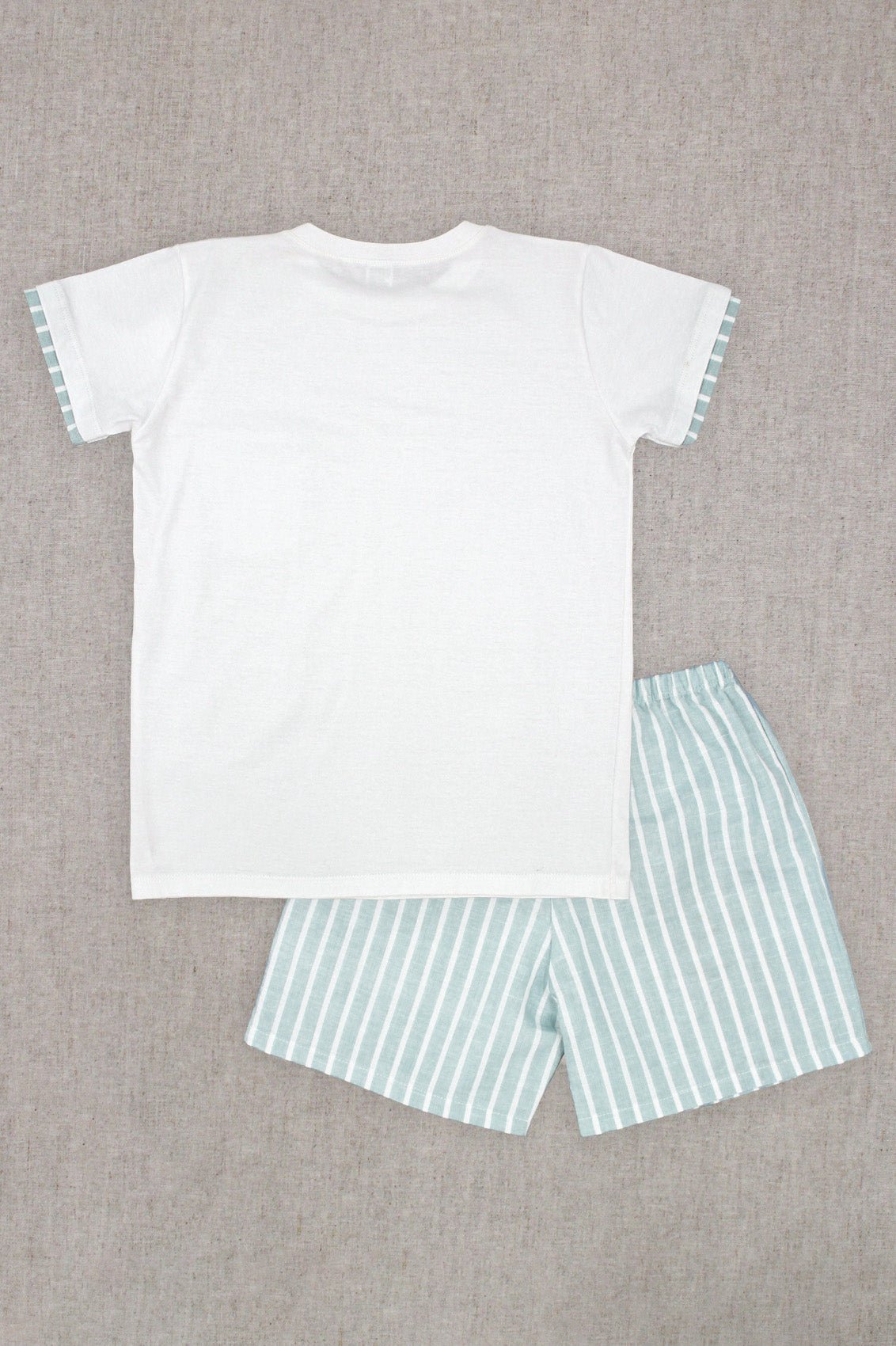 تي شيرت وشورت مخططان باللون الأزرق المخضر الفاتح من "سيلاس"