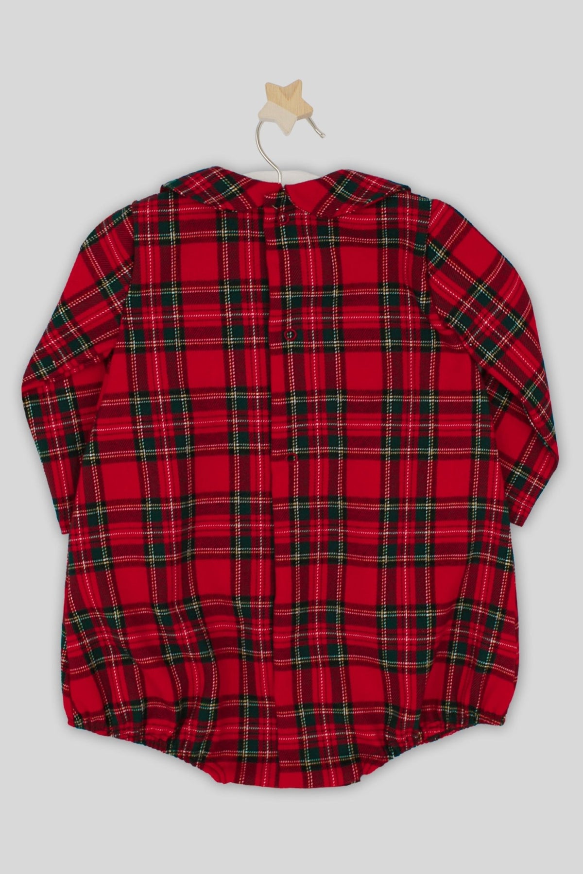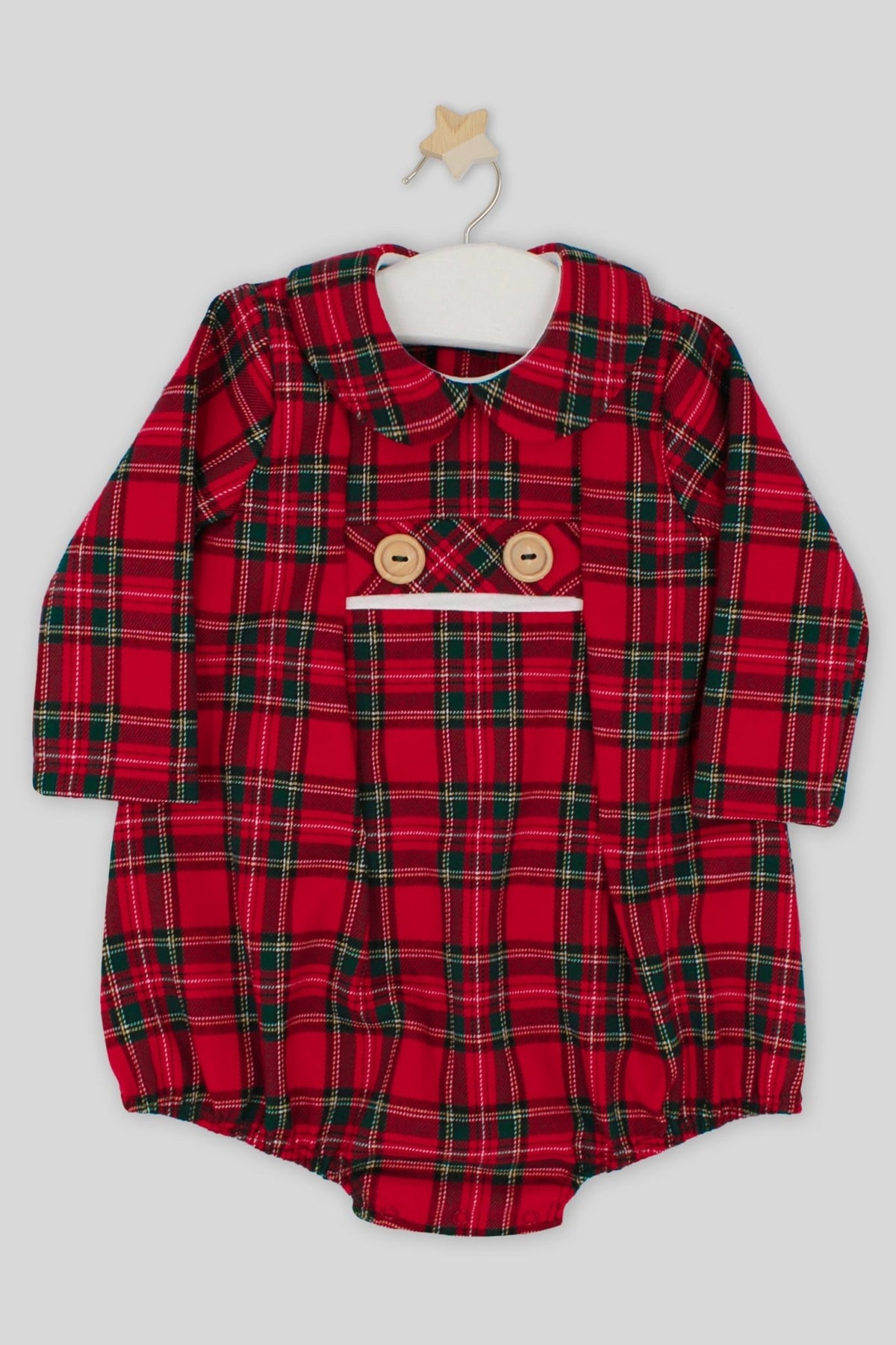 Make his first Christmas extra special with this traditional Rapife tartan romper. Crafted from soft brushed cotton in classic red and bottle green, it’s lightweight yet cosy, keeping little ones comfortable throughout the festive season. Wooden button detailing adds a charming touch, while elasticated legs and handy popper fastenings to the back and crutch make changes quick and easy for parents. Perfect for Christmas Day, family photos, and every festive celebration, this romper is a timeless outfit you’ll treasure in the photo albums for years to come.