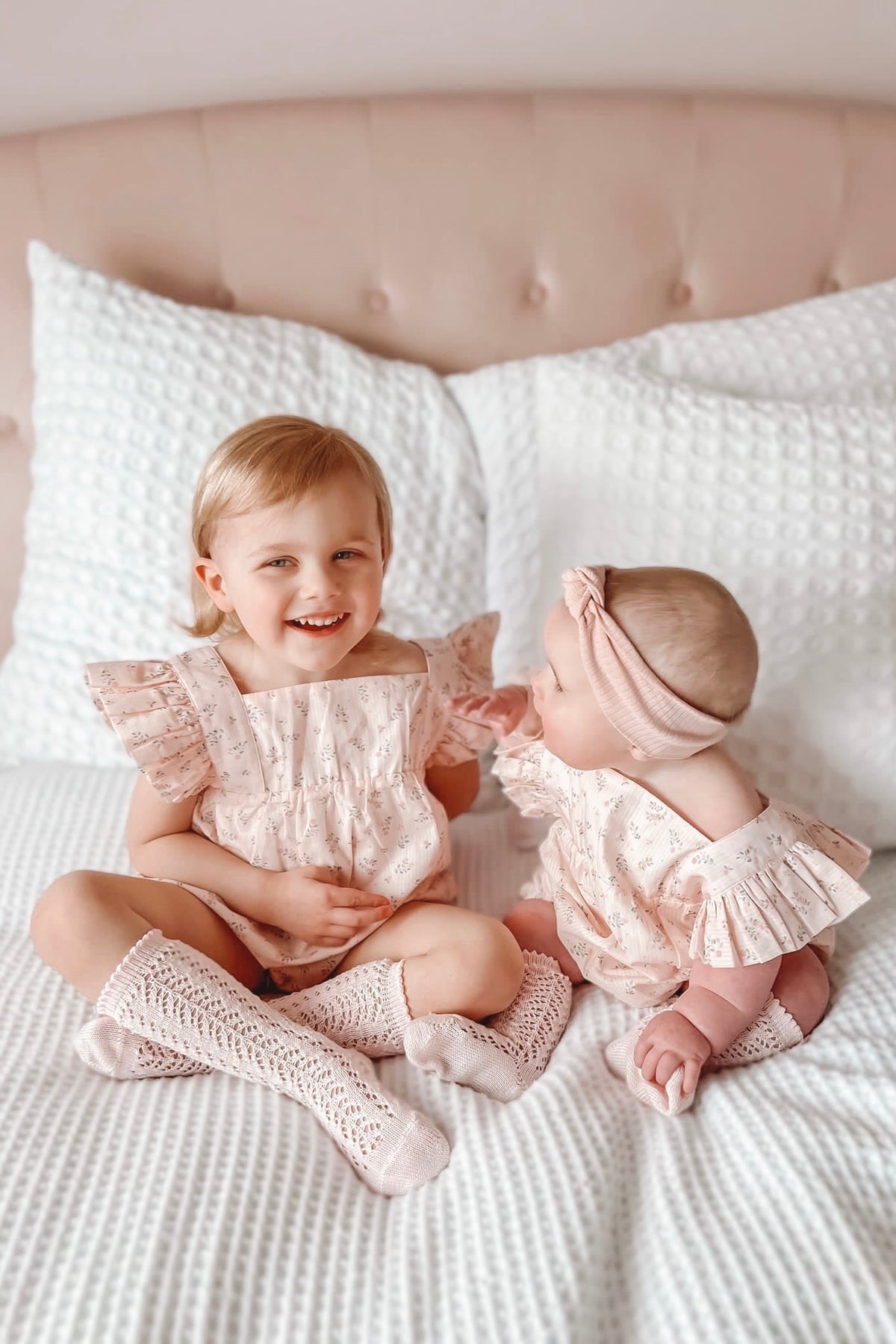 رومبير زهري للبنات من ماركة ويدوبل البرتغالية. رومبير خفيف الوزن من القطن بنقشة زهرية جميلة وأكمام واسعة مكشكشة، مصنوع من قطن ناعم وجيد التهوية.