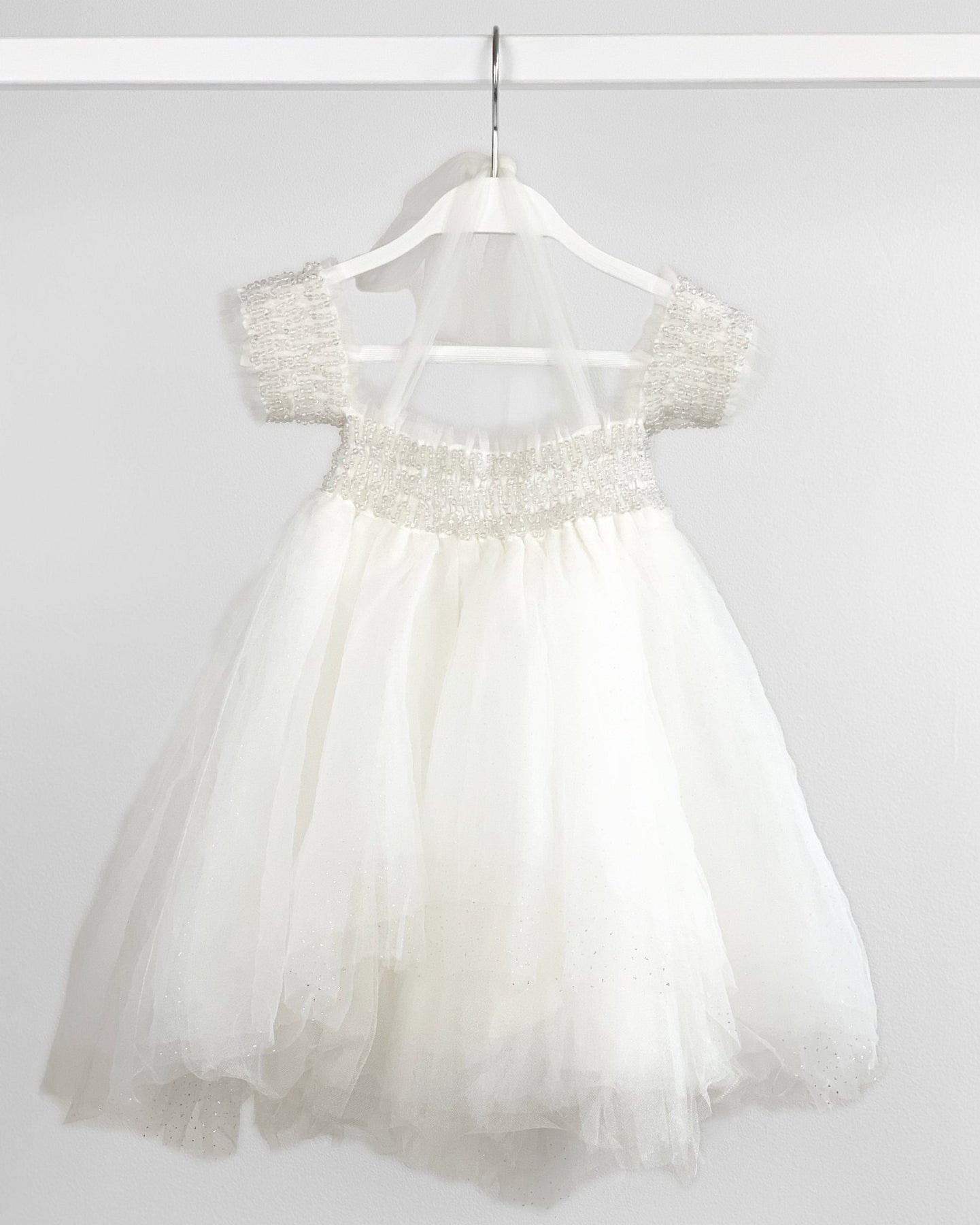 فستان "إليز" من التول الأبيض المزين بالخرز