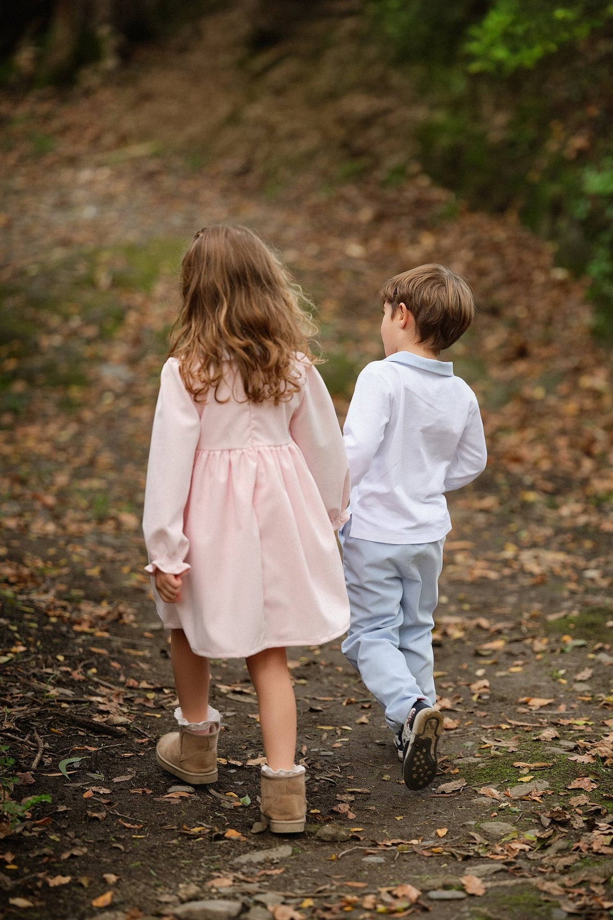 Smart yet comfortable, this set from Deolinda is made for little boys on the go. The long-sleeved polo shirt is crafted from soft, stretchy white jersey cotton, lined with fleecy fabric for extra warmth. A blue needlecord collar and matching pocket add a smart touch, while button fastenings down the front make dressing easy. Paired with mid-weight blue needlecord trousers, fully lined and elasticated at the waist for a comfy fit. A versatile outfit that balances everyday ease with a dressed-up look.