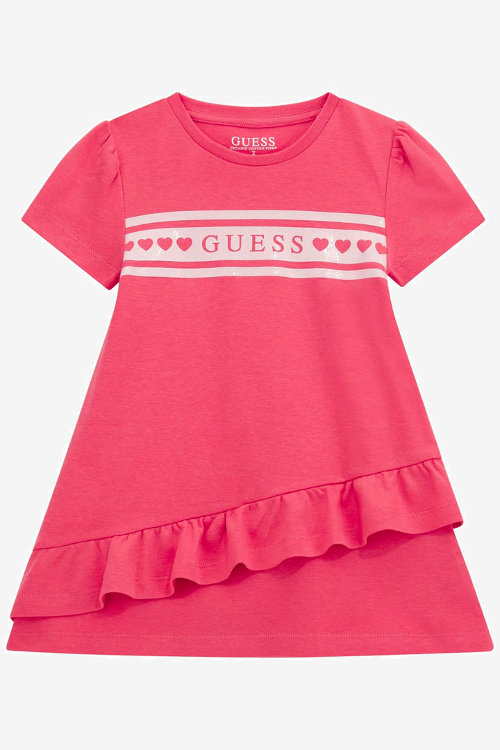 فستان زهري كرزي من GUESS® Kids ، قطعة يومية مرحة ومريحة، مثالي لصغيراتكِ الأنيقات. مصنوع من قطن ناعم وخفيف الوزن ومرن، هذا الفستان بتصميم تيشيرت يضمن لكِ الراحة ويترك انطباعًا مميزًا. يُضفي الشريط الوردي اللامع الذي يحمل شعار العلامة التجارية على الصدر لمسة من التألق، بينما تُضفي الحافة غير المتماثلة ذات الكشكشة لمسةً من المرح. سواء ارتديتِه مع حذاء رياضي لإطلالة كاجوال أو مع حذاء باليه بكعب عالٍ، فهذا الفستان قطعة أساسية متعددة الاستخدامات.