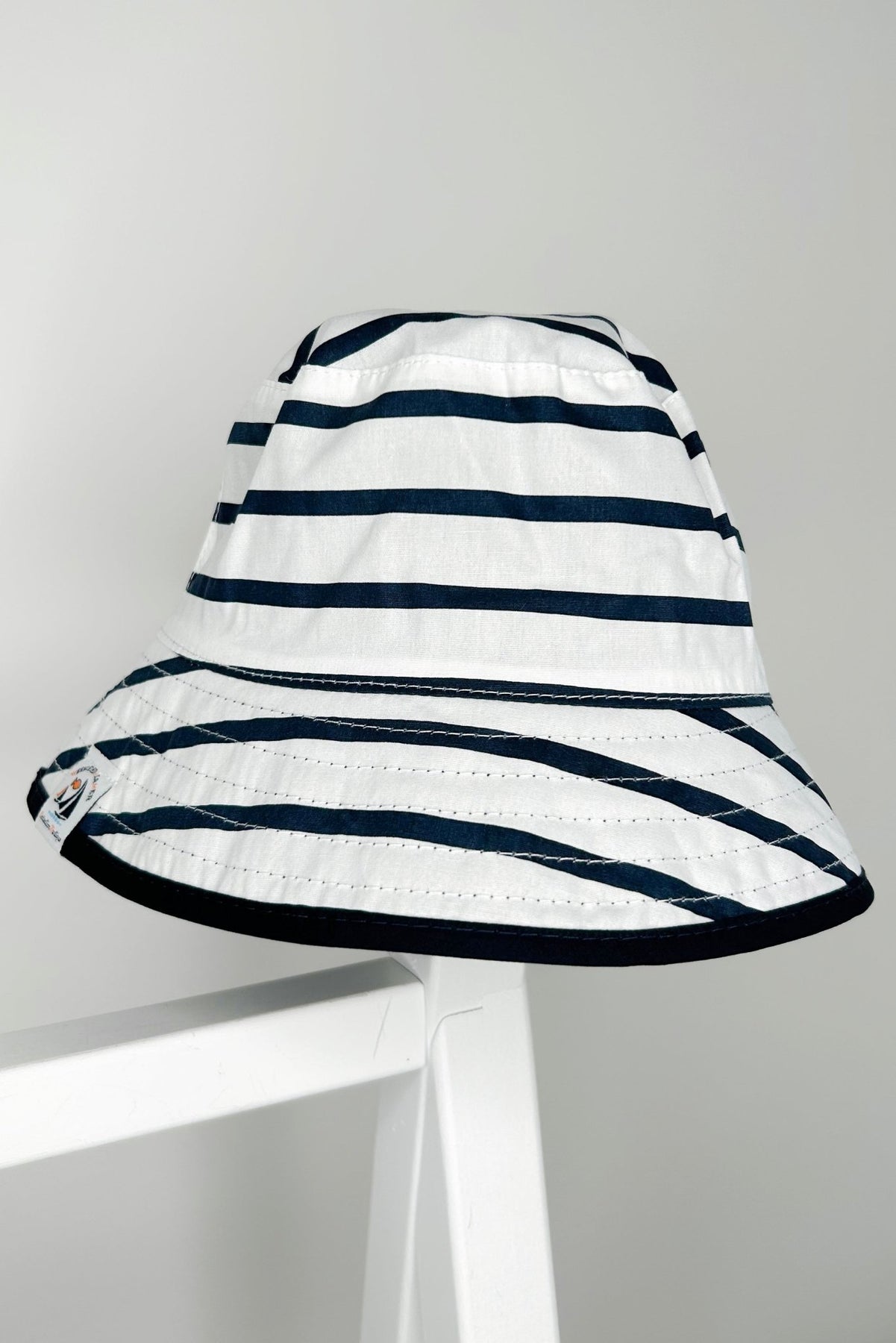 استمتعي بإطلالة ساحرة على طراز الساحل الفرنسي مع هذه القبعة الأنيقة القابلة للعكس من Week-end à la Mer . يتميز أحد الجانبين بخلفية بحرية مع طبعة سفينة شراعية ملونة تُضفي شعورًا بالدفء والراحة؛ اقلبيها لتحصلي على خطوط زرقاء وبيضاء خالدة لإطلالة بريتونية كلاسيكية. مصنوعة من قطن ناعم يسمح بمرور الهواء، ومخيطة بحافة أنيقة، ويمكن طيها بسهولة في حقيبة الشاطئ، وتستعيد شكلها الطبيعي استعدادًا لمغامراتك المشمسة.