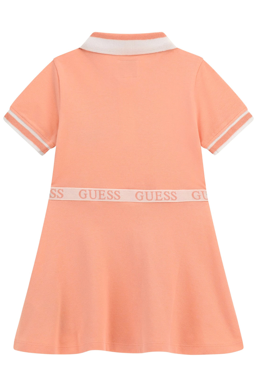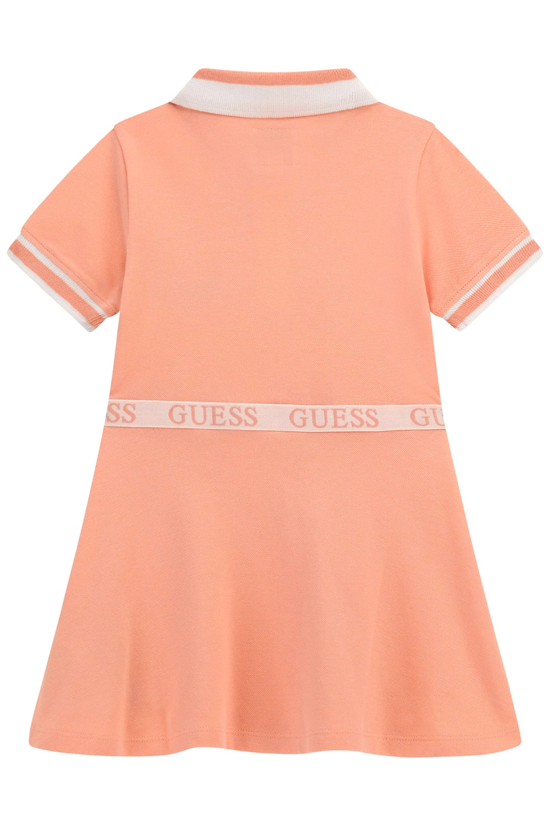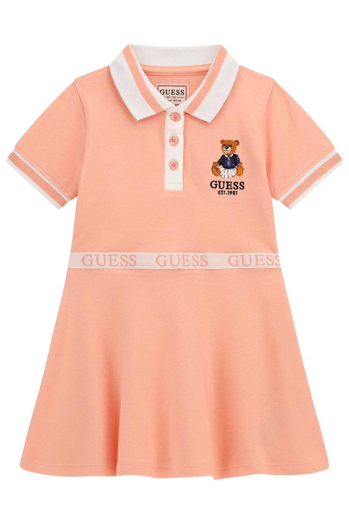 رياضي وجميل! هذا الفستان الخوخي من GUESS® Kids مصنوع من قطن بيكيه ليمنحكِ مظهرًا كلاسيكيًا كقميص بولو. يتميز بحواف بيضاء، ونقشة دب رياضية على الصدر، وأزرار أمامية لإطلالة أنيقة وبسيطة. قماشه المرن وخفيف الوزن يجعله مثاليًا للعب أو الخروجات غير الرسمية.