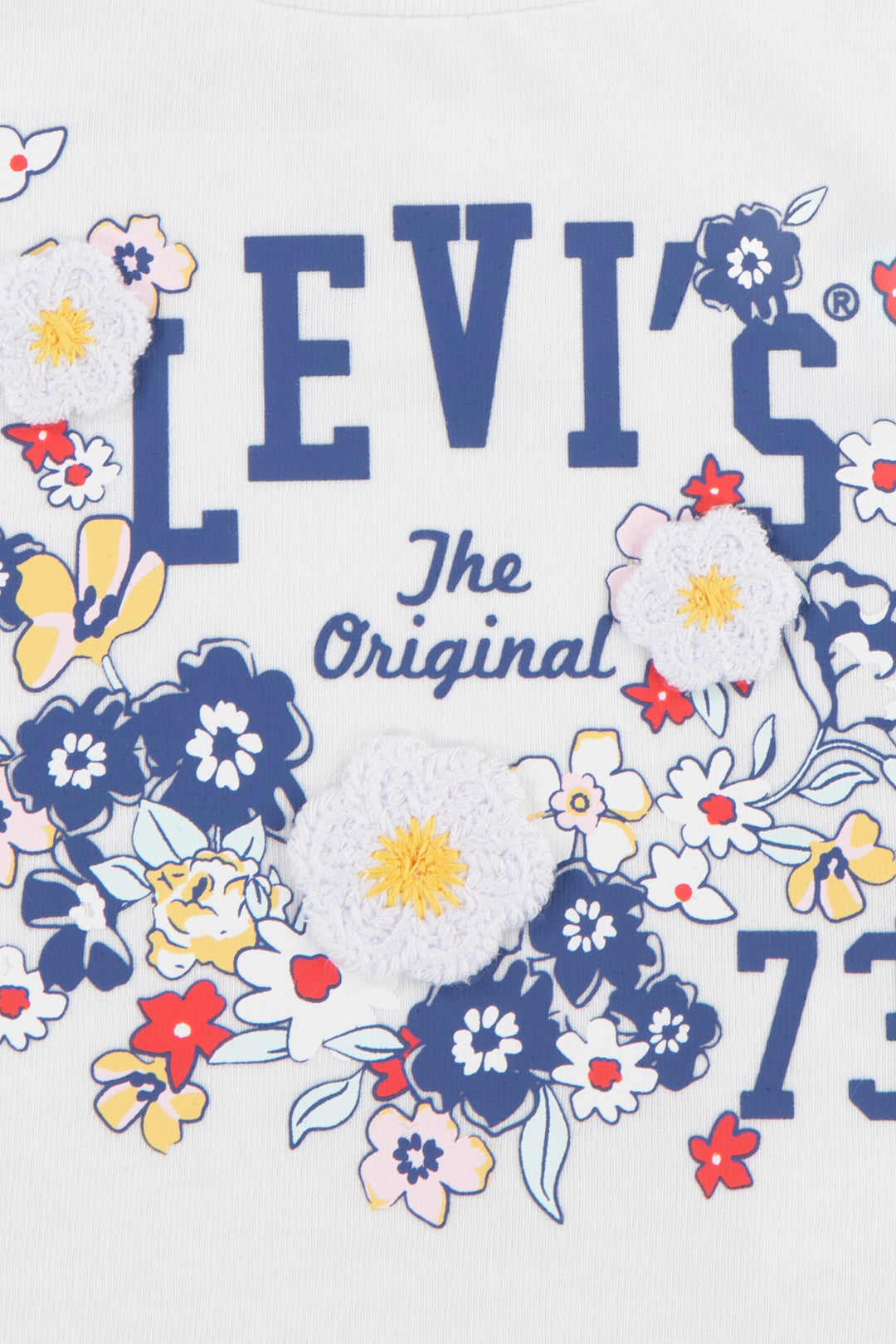 طقم ملابس ليفيز® الأبيض المزين بالزهور هو مزيج مثالي بين الأناقة والجمال! يتميز التيشيرت بأكمامه المنسدلة بطبعة زهور نابضة بالحياة مع تفاصيل زهور ثلاثية الأبعاد محبوكة بدقة، مما يضفي لمسة ساحرة. شورت الدنيم خفيف الوزن مزين بتطريزات زهور ، وحزام خصر قابل للتعديل ، وقفل خطافي بأزرار وهمية لسهولة الارتداء.