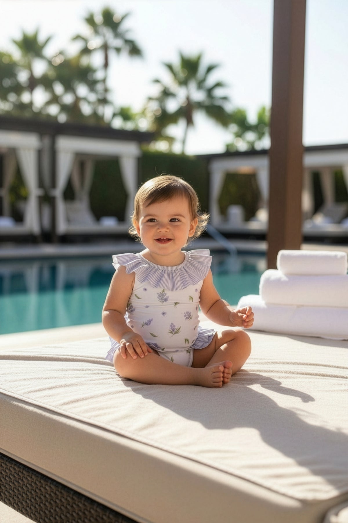 Elegant and full of charm, Meia Pata's Lavender print Barbados swimsuit is a beautifully detailed one-piece designed for memorable summer days. Crafted from silky smooth recycled fabric with UPF 50+ sun protection, it offers reliable coverage while feeling soft and comfortable against the skin.