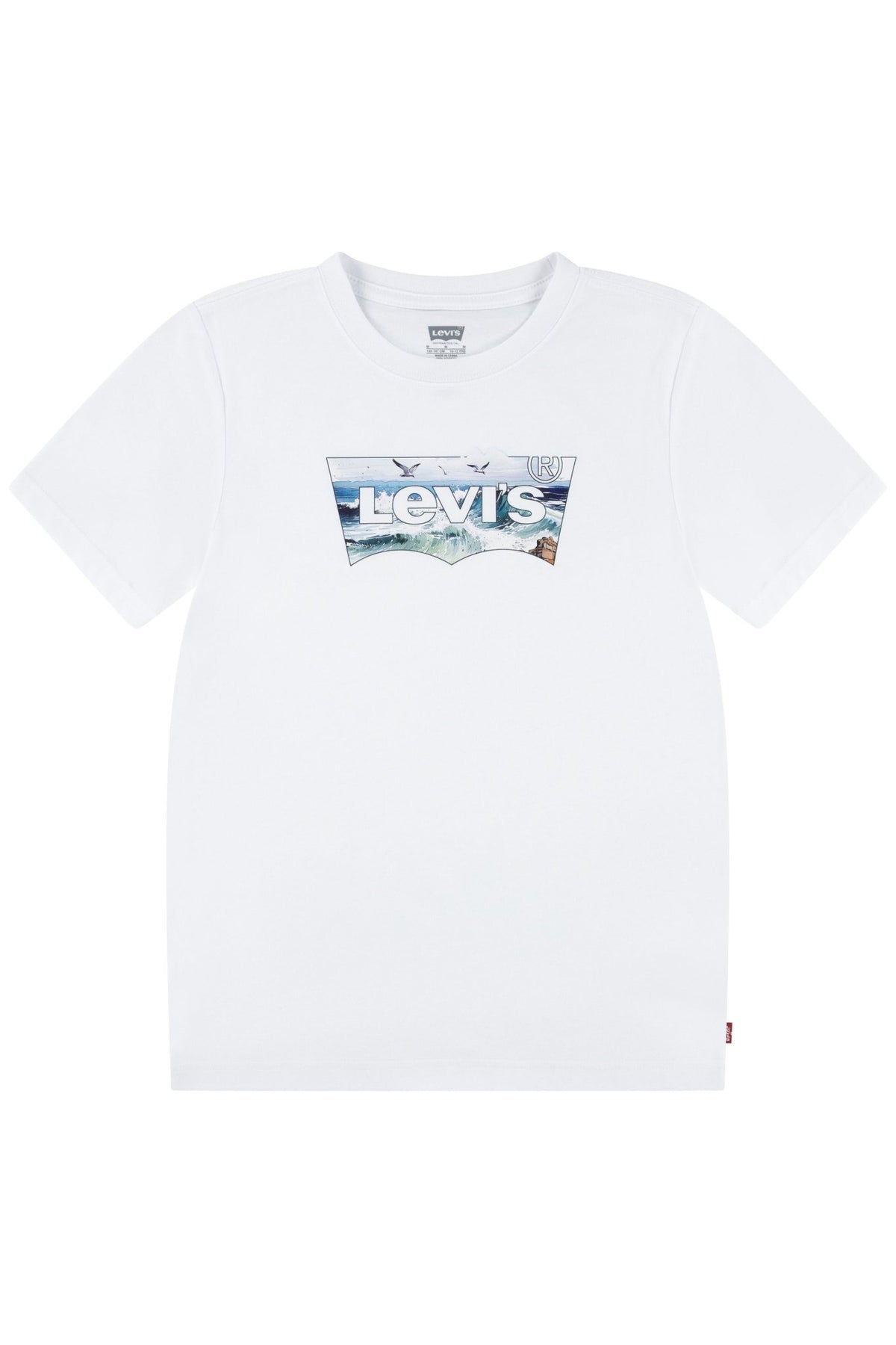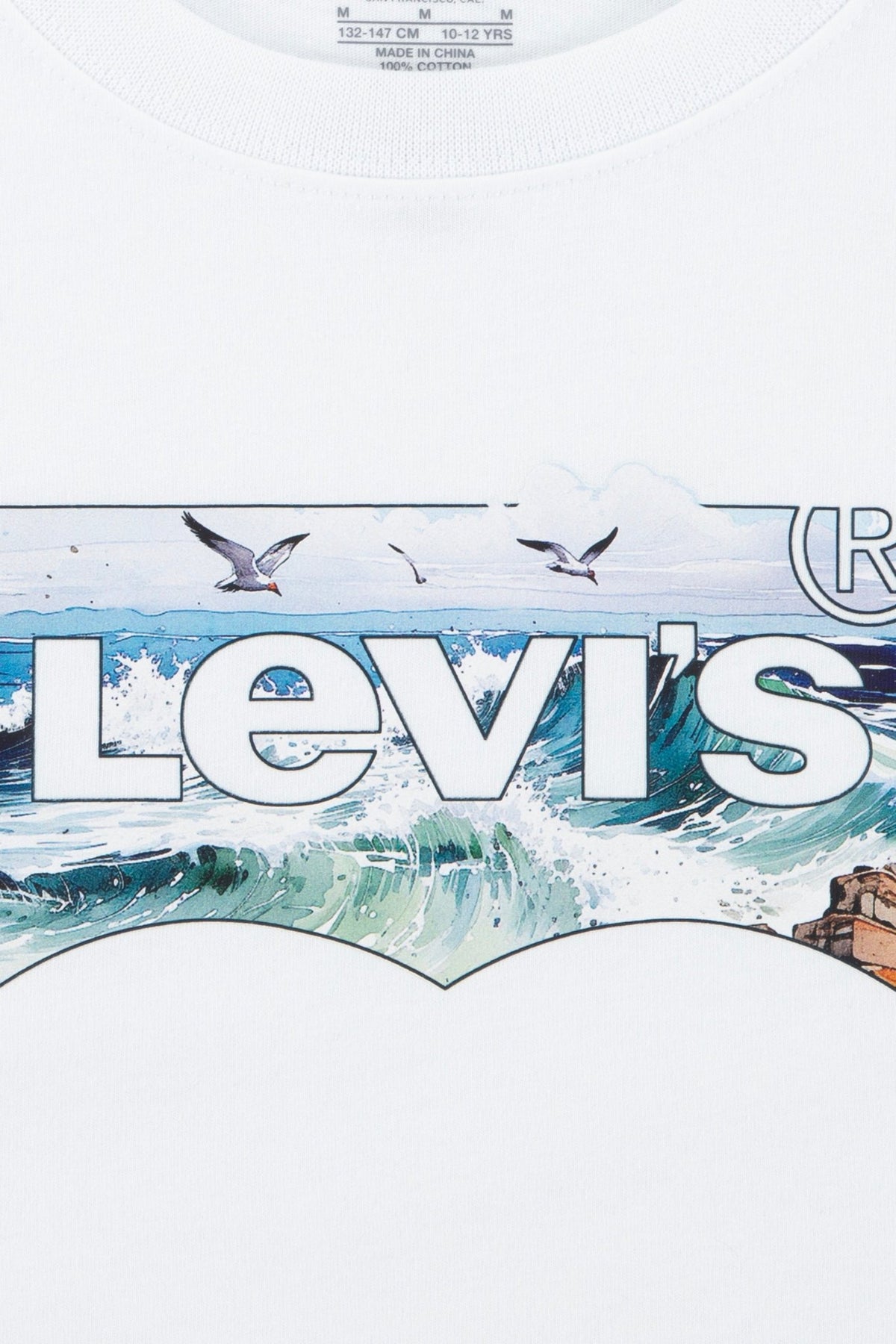 حافظ على أناقتك الكلاسيكية مع تيشيرت ليفيز® الأبيض الناصع ذي التصميم الجرافيكي . مصنوع من مزيج قطني ناعم ، يتميز هذا التيشيرت الأساسي اليومي بشعار ليفيز® باتوينغ الشهير وطبعة مستوحاة من المحيط . خفيف الوزن، يسمح بمرور الهواء، ومثالي للارتداء الكاجوال.
