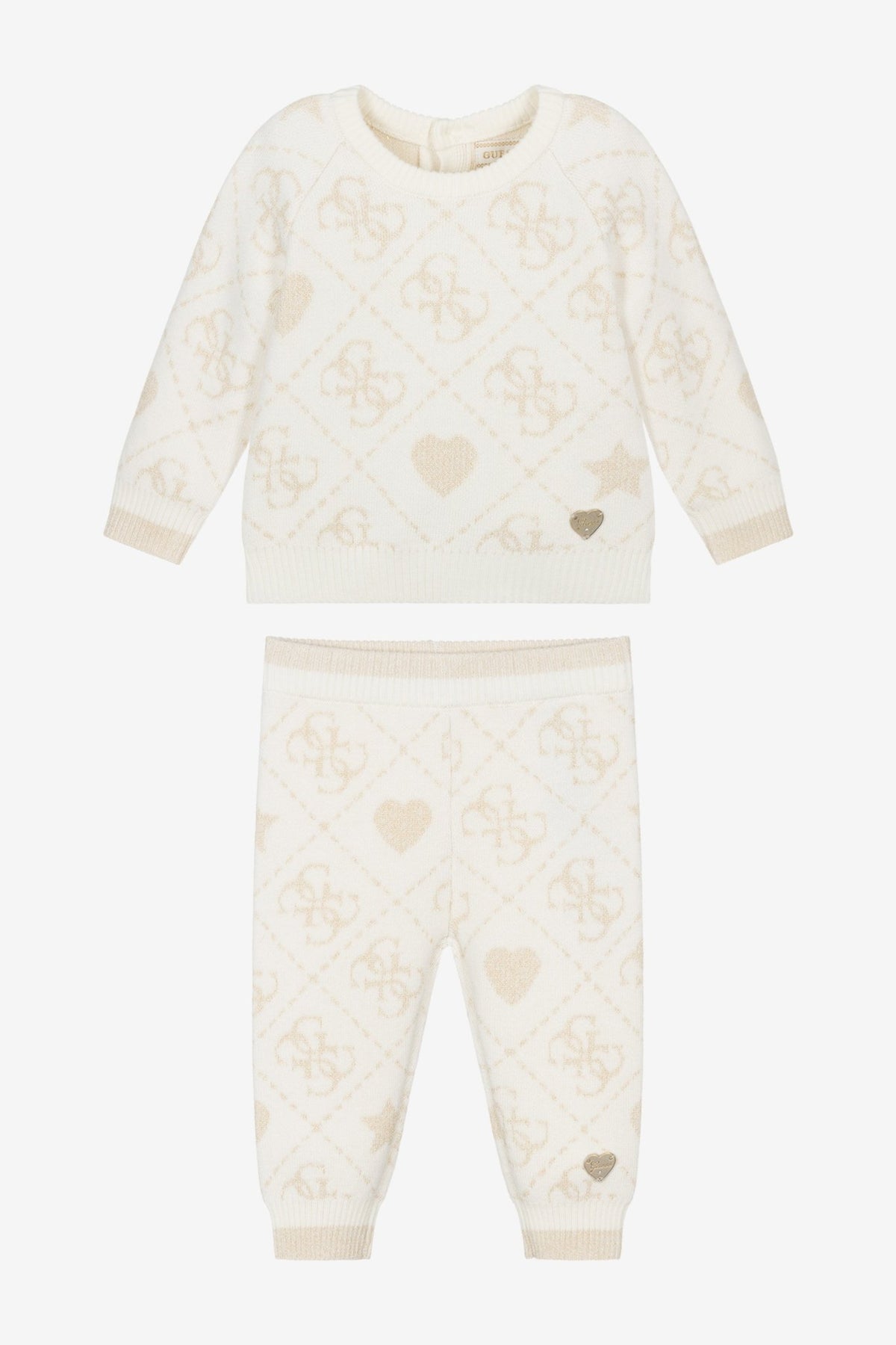GUESS® Kids "Aspen" Ivory & Gold Monogram Knitted Trouser Set - Millie and John