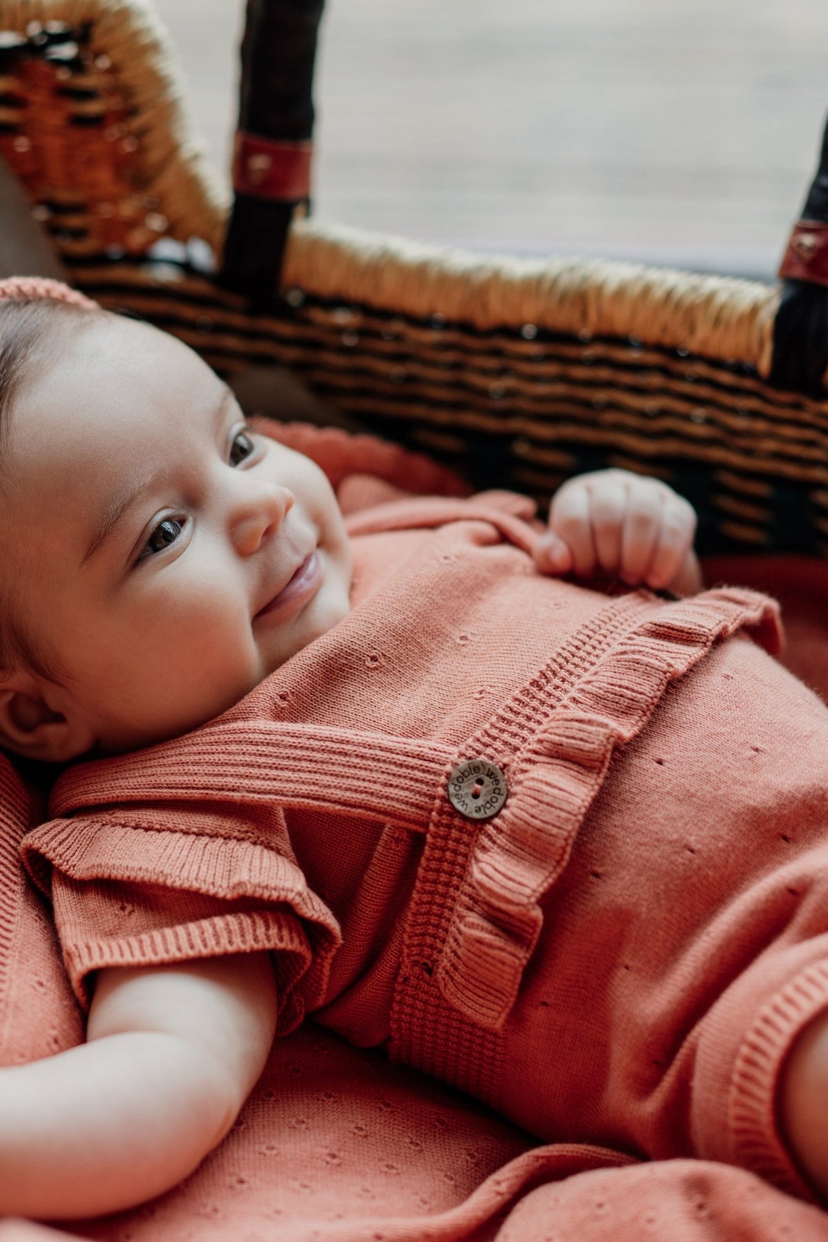 Baby girl's lightweight fine knit bloomers with braces from Portuguese brand Wedoble.
