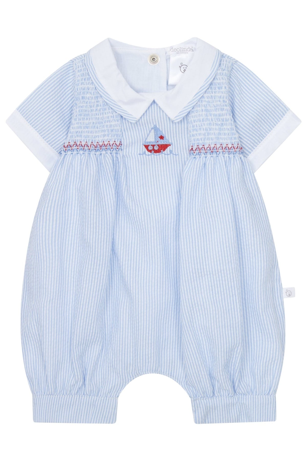 From Portuguese brand Deolinda, this charming blue striped romper is perfect for sunny days and seaside adventures.