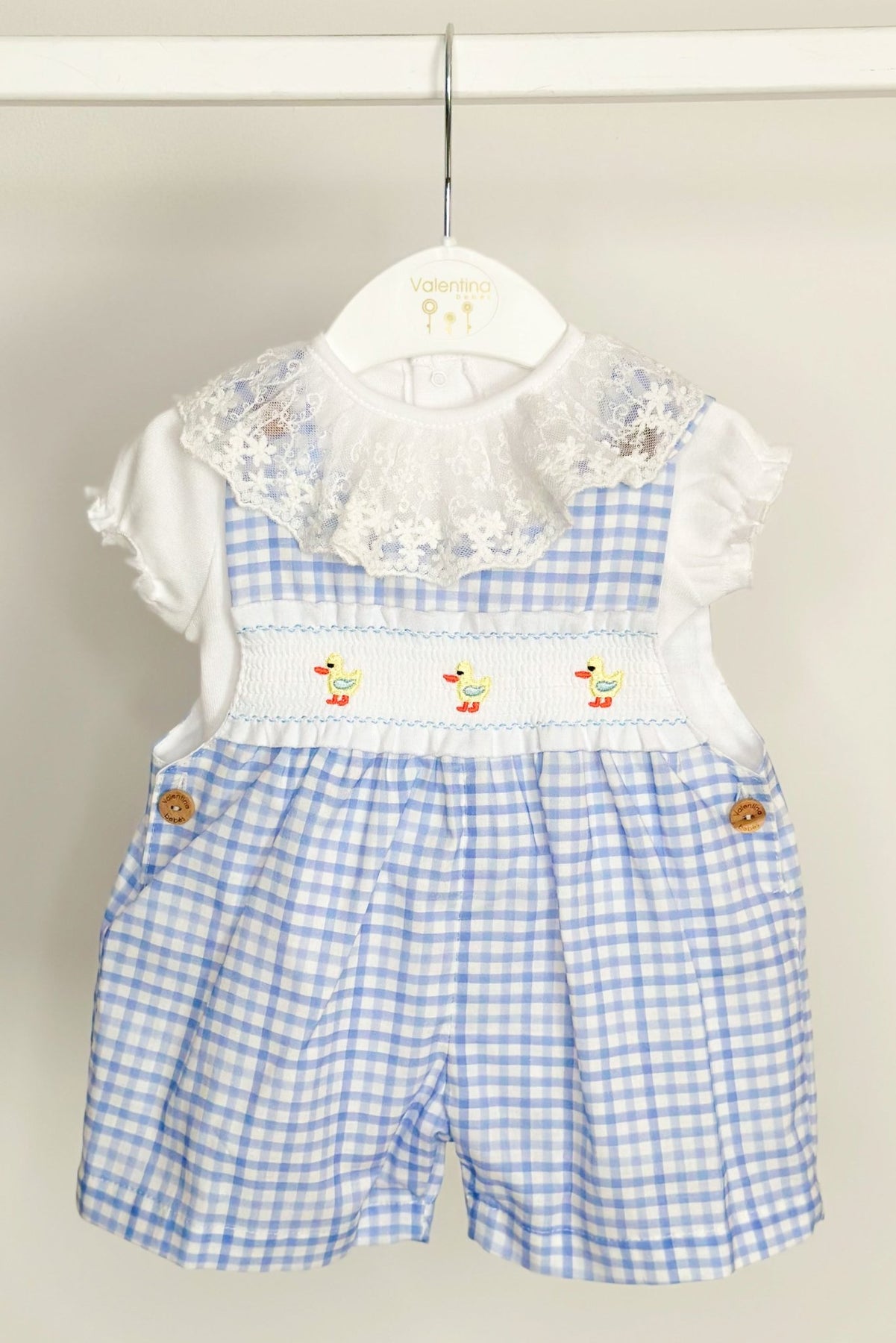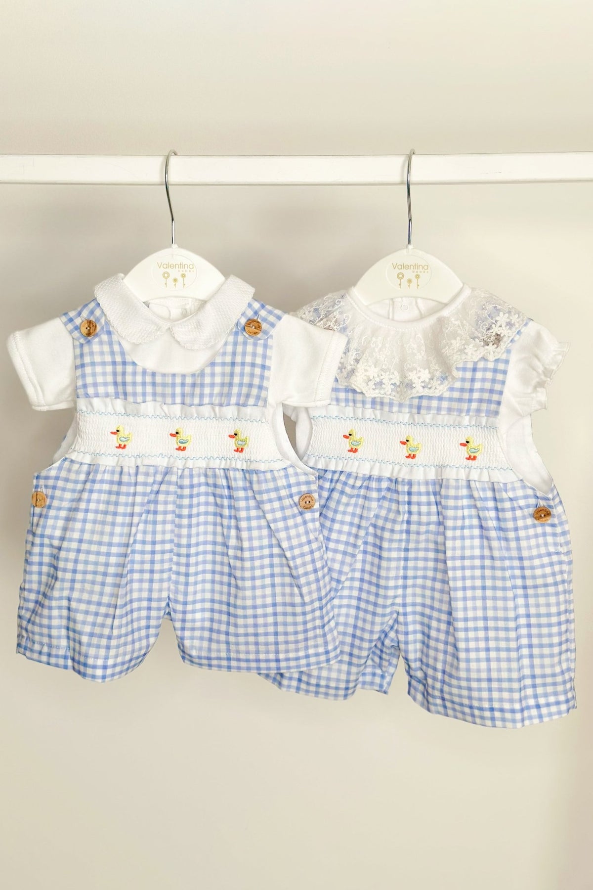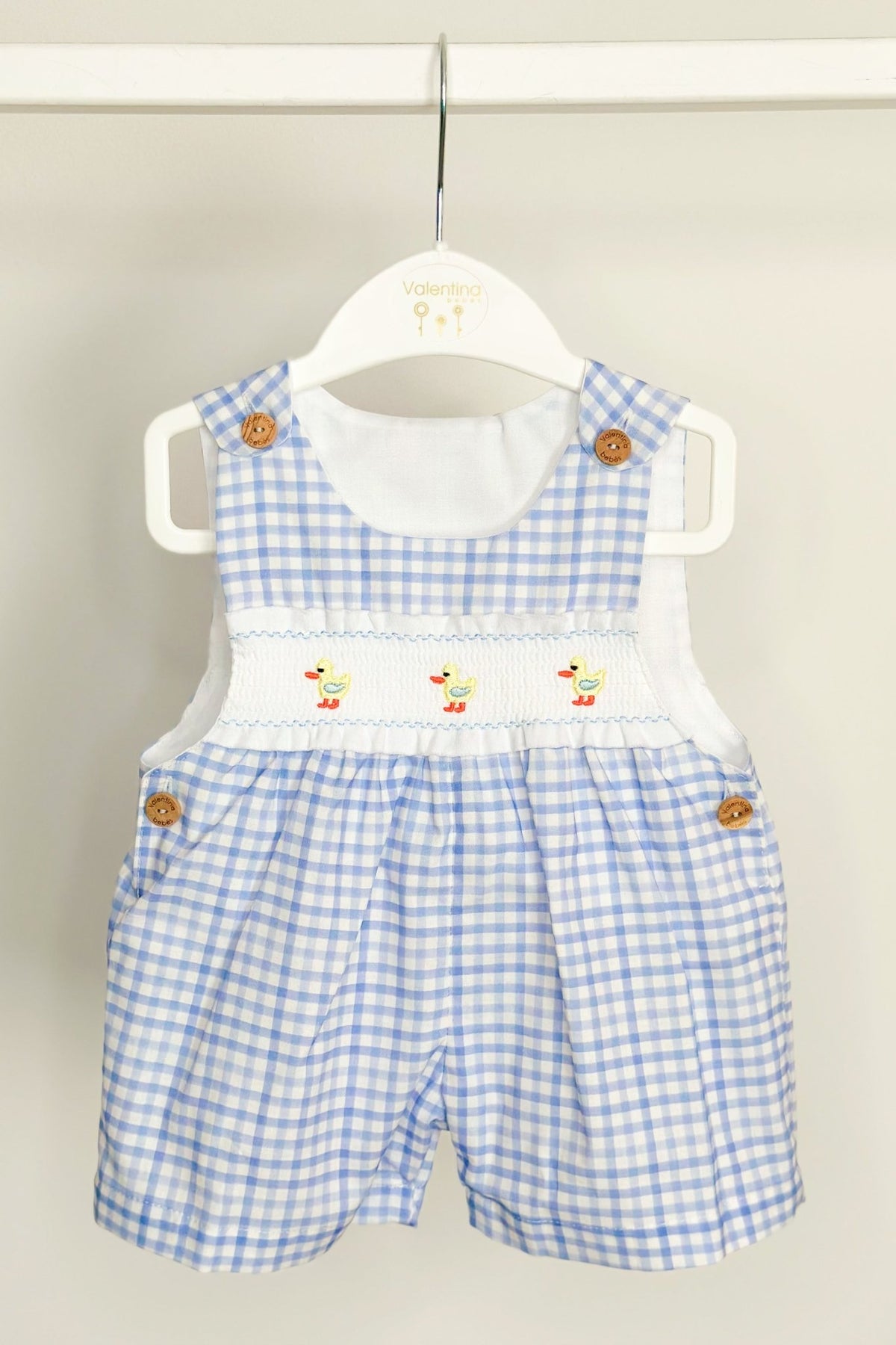 Valentina Bebés "Sammie" Blue Gingham Smocked Duck Dungarees - Millie and John