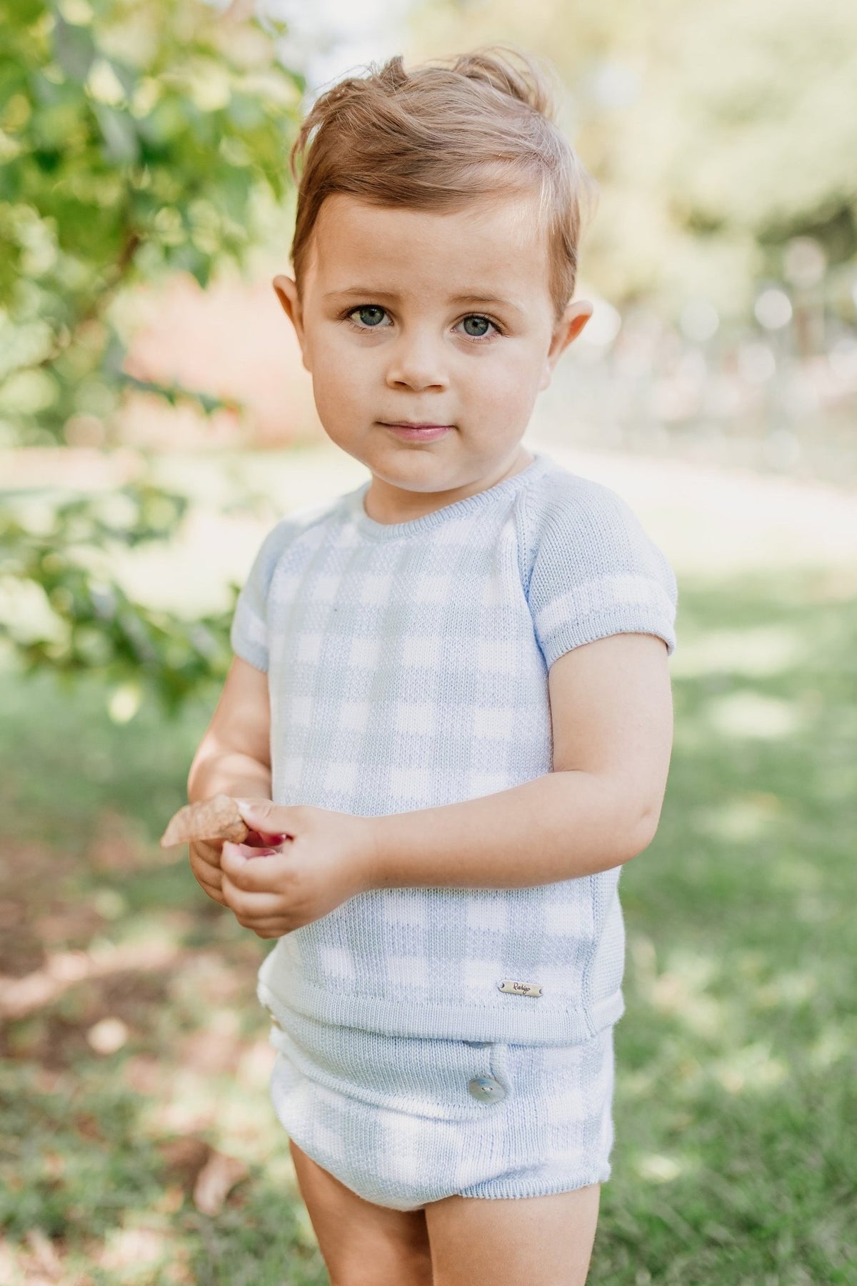 "Frederick" Baby Blue Gingham Knit Top & Jam Pants