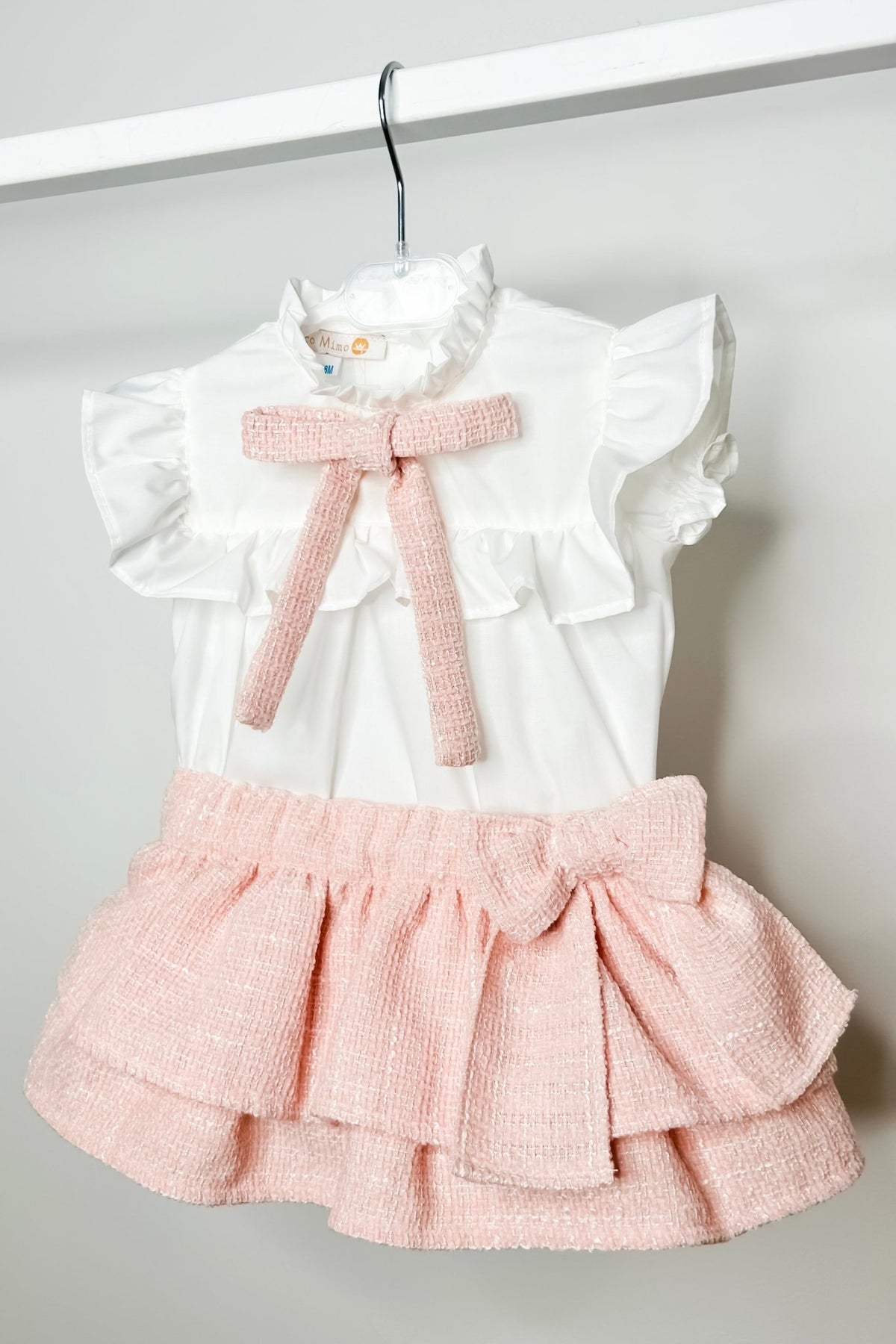 "Belinda" Blush Pink Bouclé Blouse & Skort