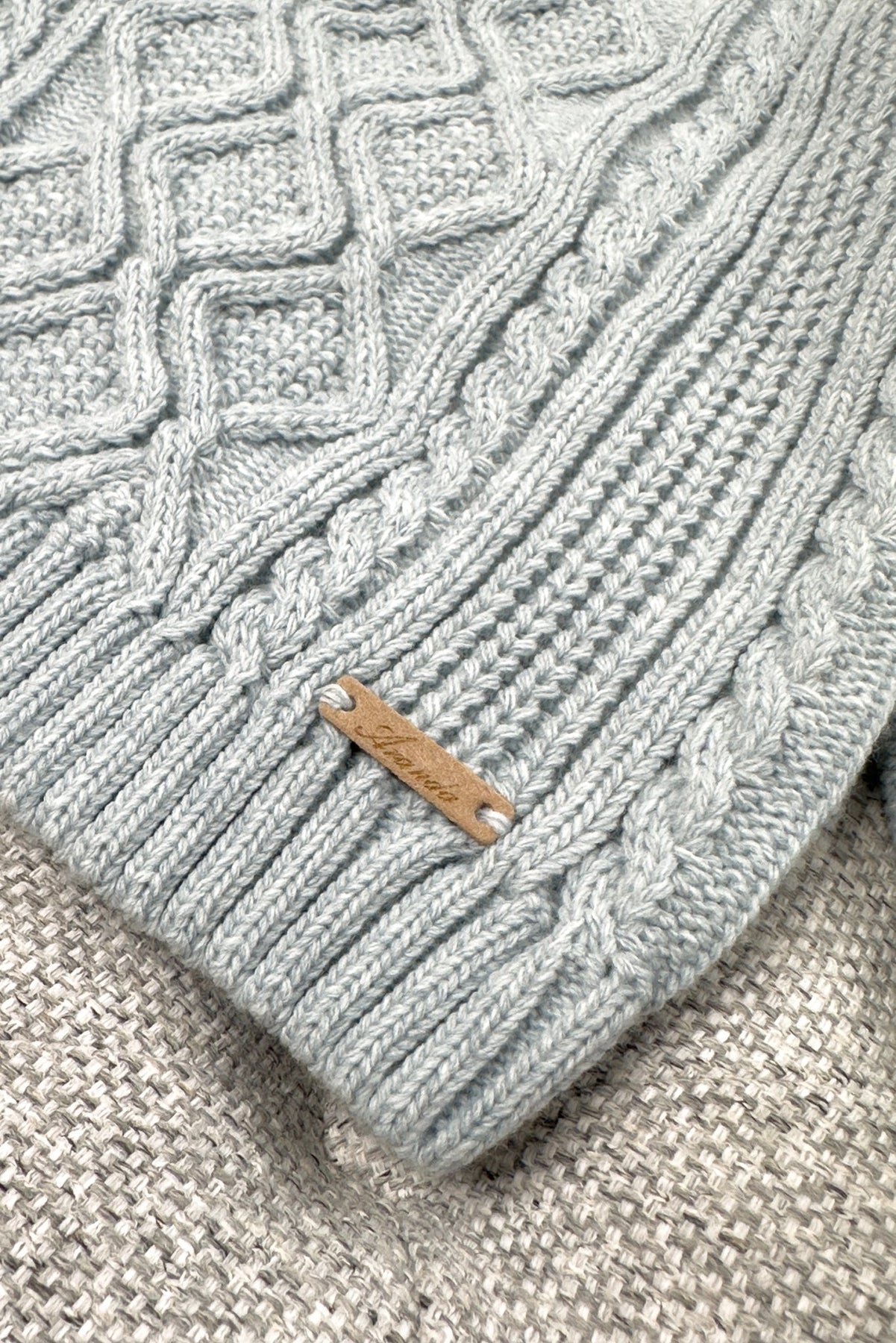 Heritage style meets everyday comfort in this chunky knit jumper from Martín Aranda. Knitted in soft powder blue with a bold cable design, it’s the perfect balance of warmth and style for growing boys. The mid-weight, stretchy knit makes it comfortable for play and layering, while the branded leather tab at the hem adds a subtle finishing touch. A timeless winter staple to wear again and again.