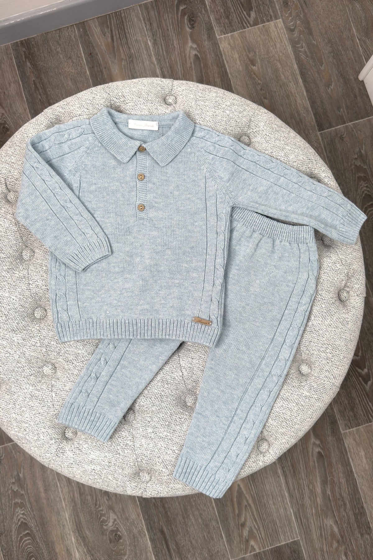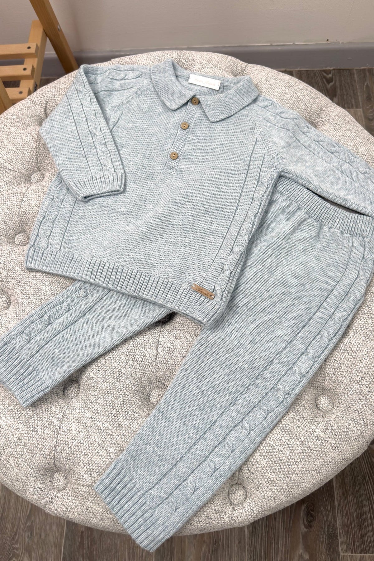 "Dario" Powder Blue Cable Knit Polo Top & Trousers