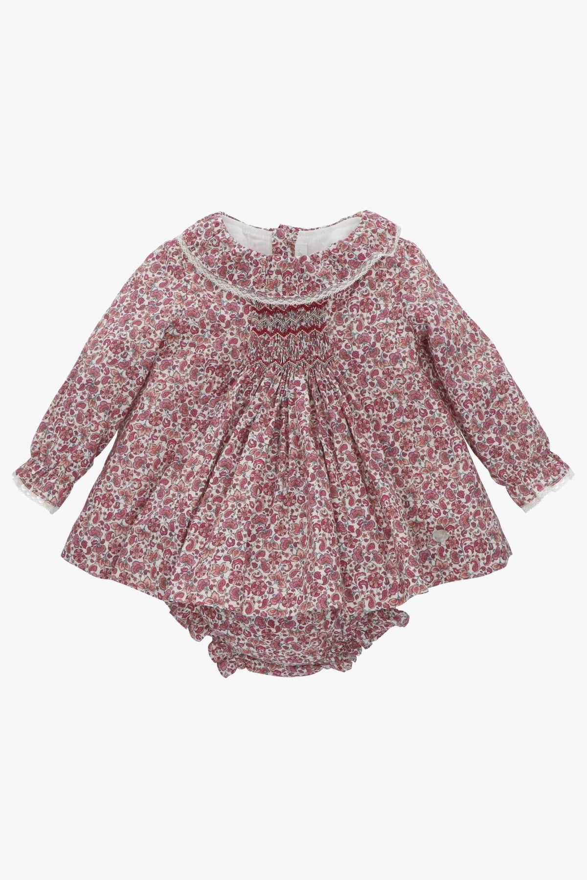 "Pippa" Burgundy Smocked Floral Dress & Bloomers