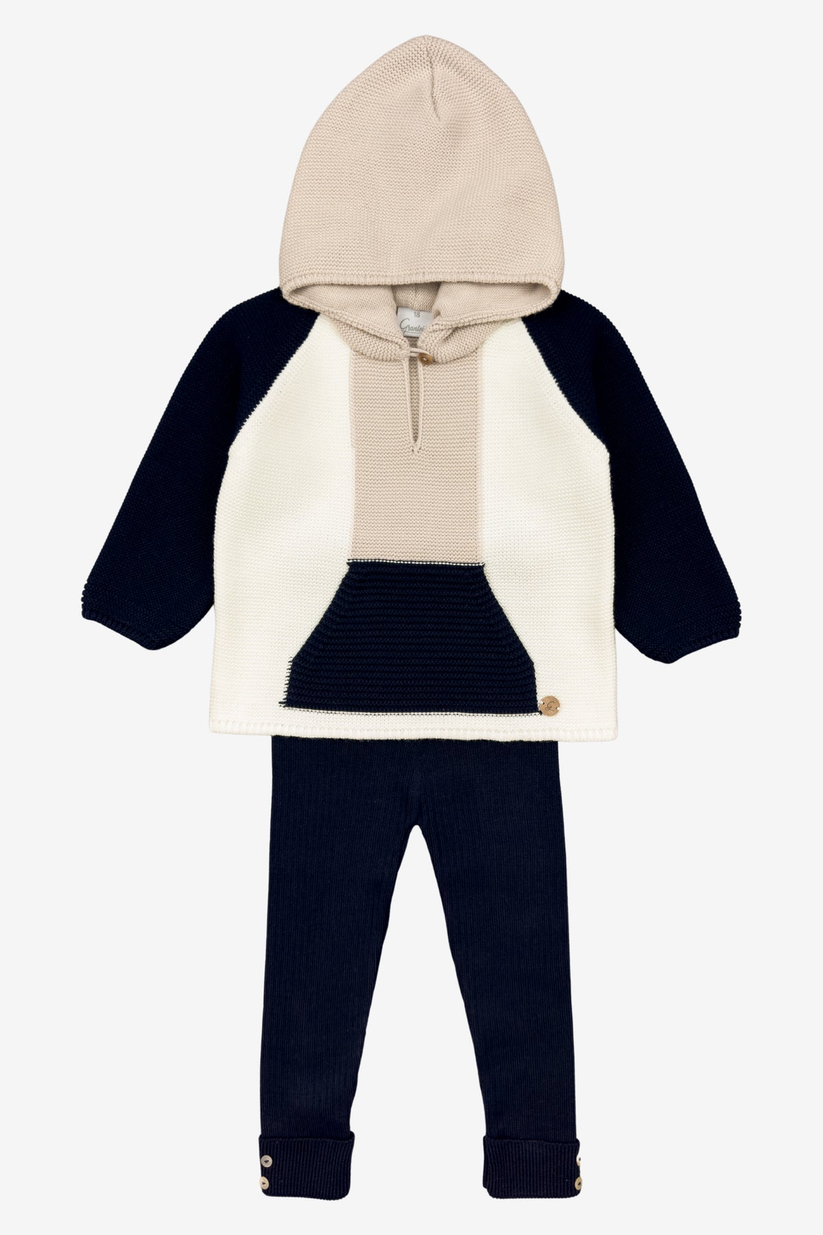 For the little one who’s always exploring, this set makes every chilly day feel like an adventure. Granlei’s knitted hoodie is beautifully thick yet gentle, lined hood for warmth and comfort, and finished with thoughtful details – a wooden button at the neckline, a navy kangaroo pocket for tiny treasures, and the brand’s signature wooden disc at the hem. The matching ribbed leggings feature turned-up cuffs with mother-of-pearl buttons and an adjustable waistband to grow with him. Cosy, practical, and full of character – the kind of outfit that keeps up with his curiosity.
