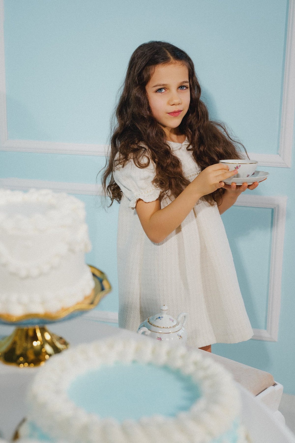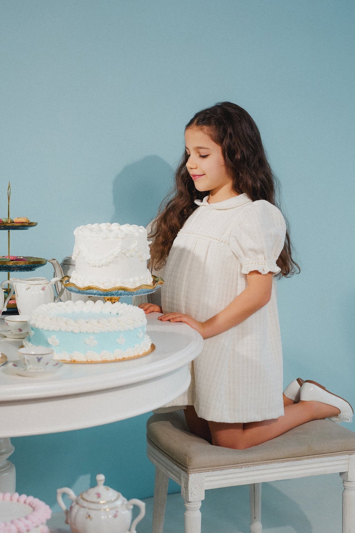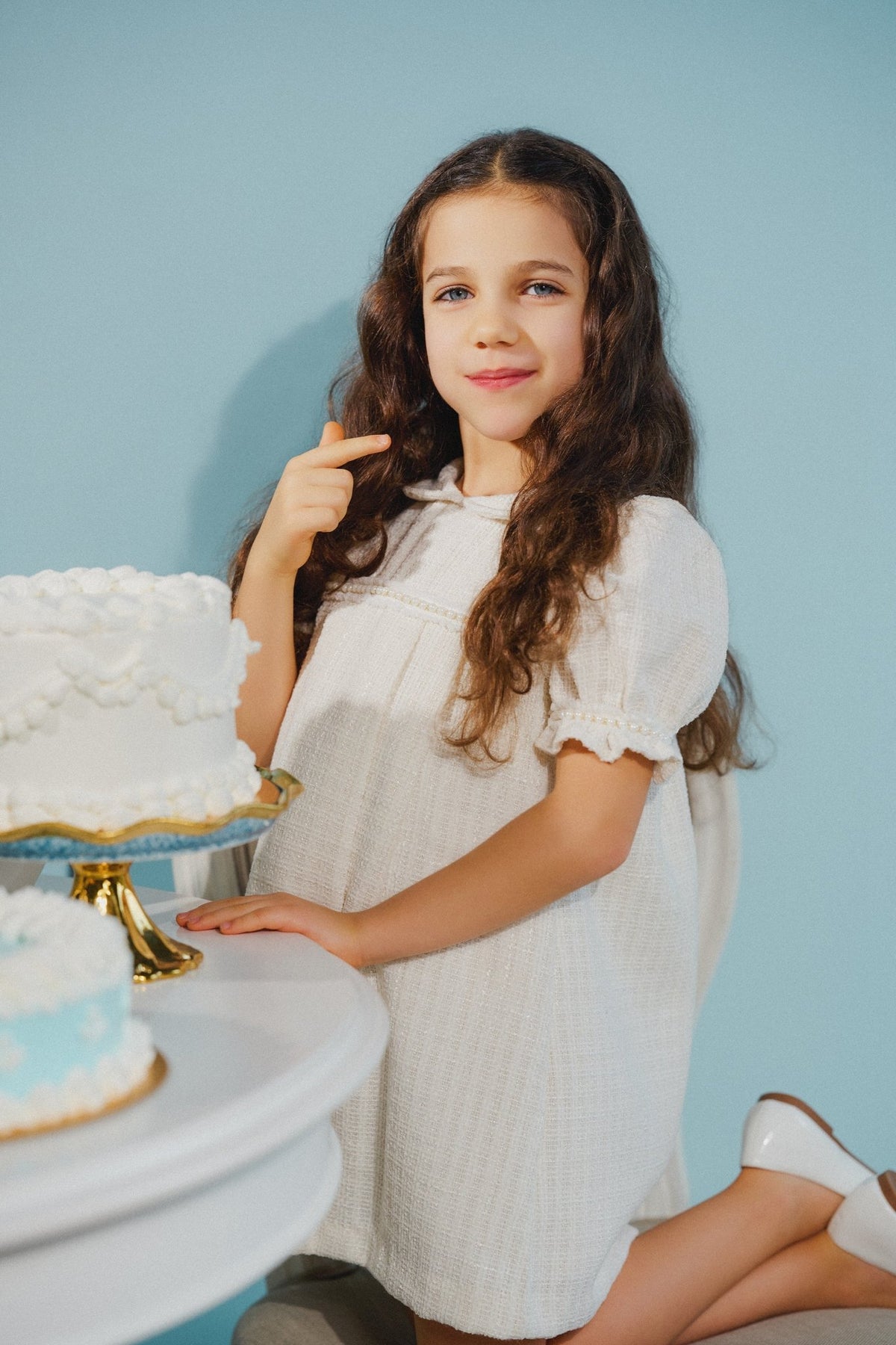 A dress made for life’s most memorable moments, from Chic by Deolinda. Crafted in a soft cream tweed with delicate shimmer threading, this timeless piece captures understated elegance. The rounded collar and puffed sleeves add a classic silhouette, while the faux pearl and tulle trim brings a touch of refinement reminiscent of couture detailing. Fully lined for comfort and finished with a concealed zip fastening, it’s a dress designed for birthdays, celebrations, and every occasion where she deserves to shine.