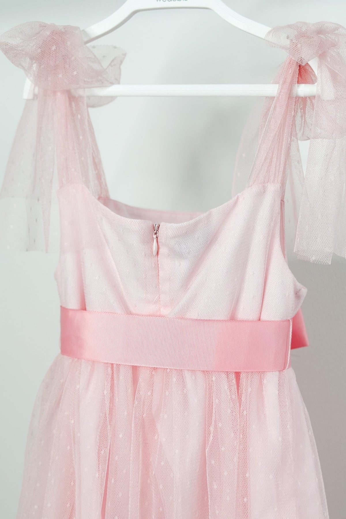 Your little one will look every bit the princess in the Aurora dress from Portuguese brand Phi Clothing. A cloud of soft pink tulle floats over the cotton base, dotted with delicate polka spots for a whimsical touch. Sheer tulle straps tie into pretty bows on the shoulders, while a statement grosgrain sash cinches the waist in a flourish of fairytale charm. Perfect for birthdays, weddings, or simply twirling the afternoon away.