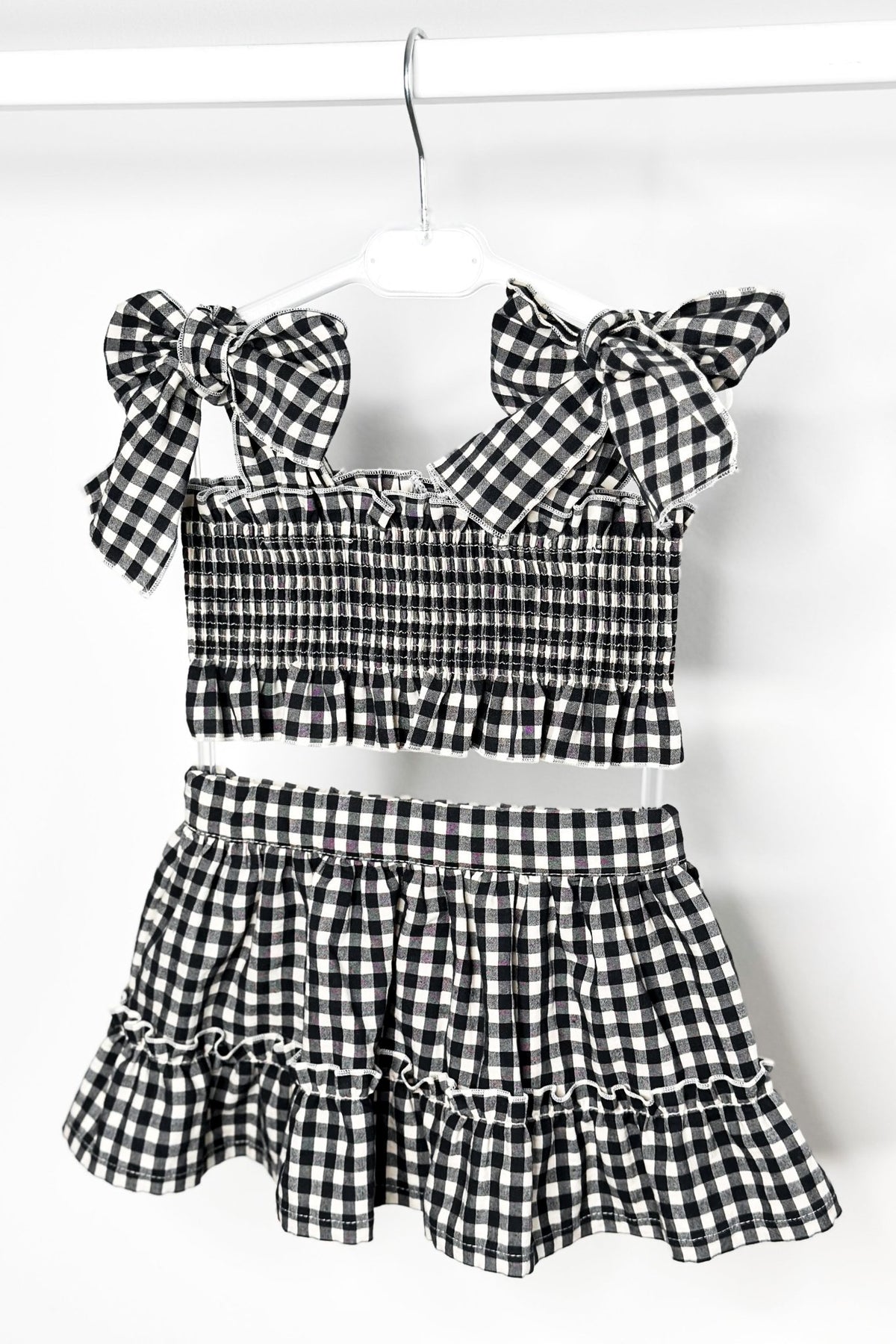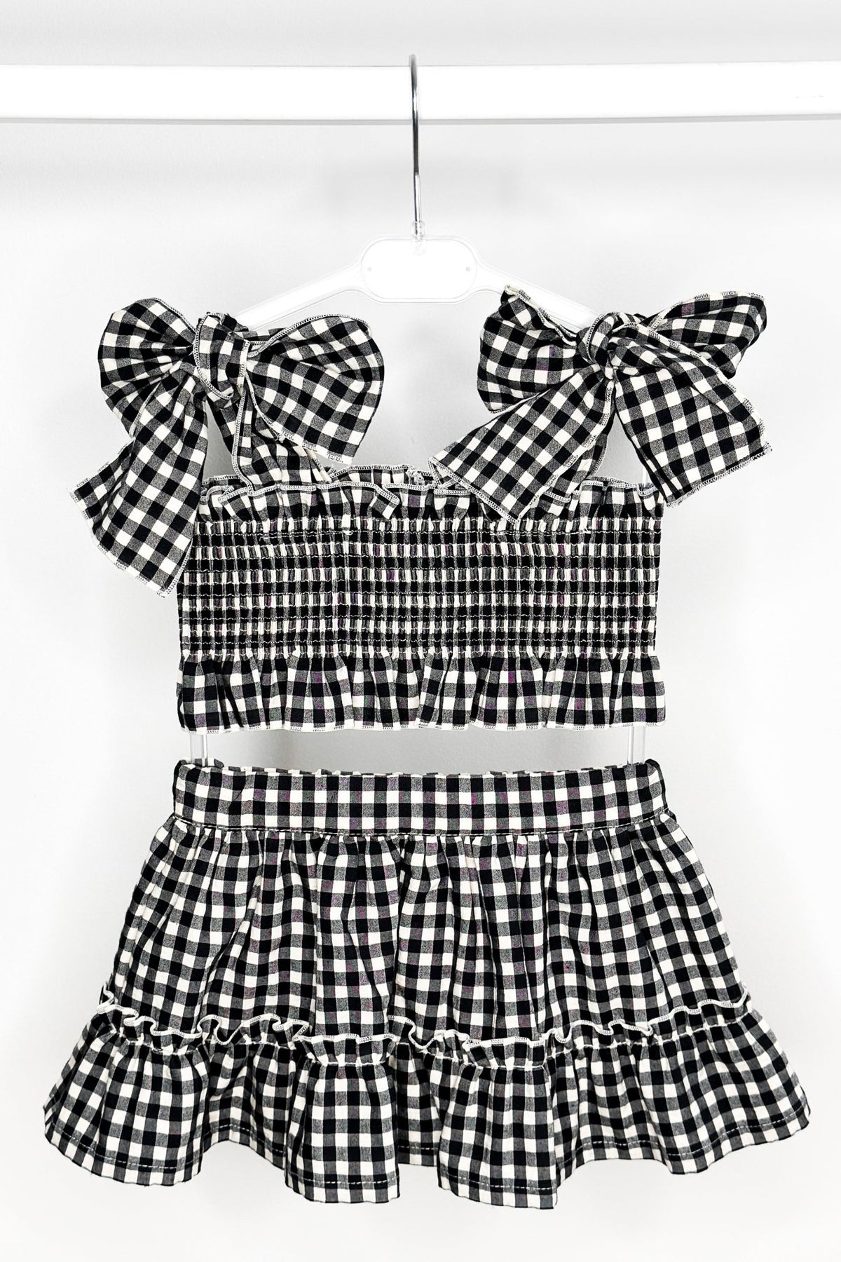 Every little girl needs a gingham moment, and this two-piece set from Portuguese brand Phi Clothing delivers it in the most stylish way. The lightweight crop top features a comfortable shirred bodice with shoulder straps that tie into oversized bows, making it as playful as it is chic. The matching tiered skirt twirls beautifully with every step, while the adjustable elasticated waist ensures a comfortable fit all day long. Effortless, girly, and perfect for summer adventures.