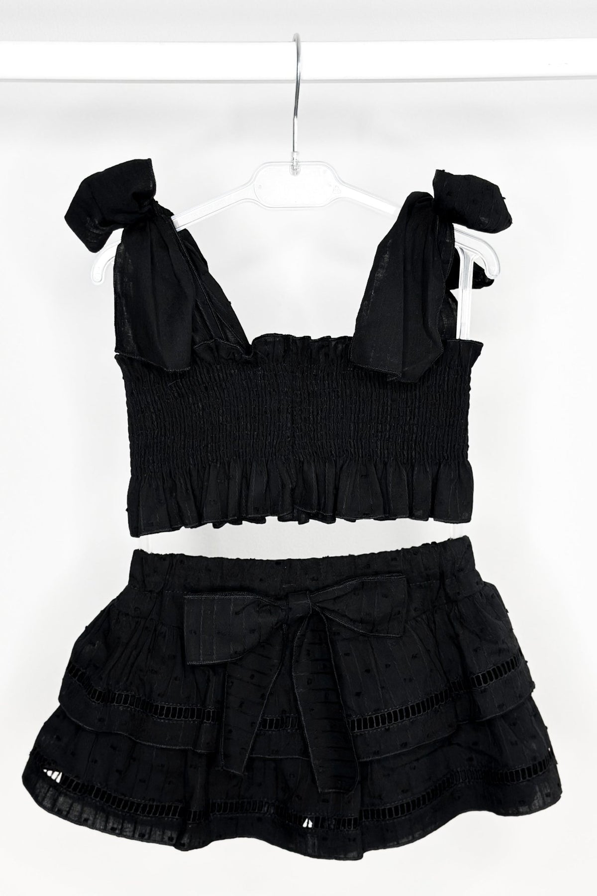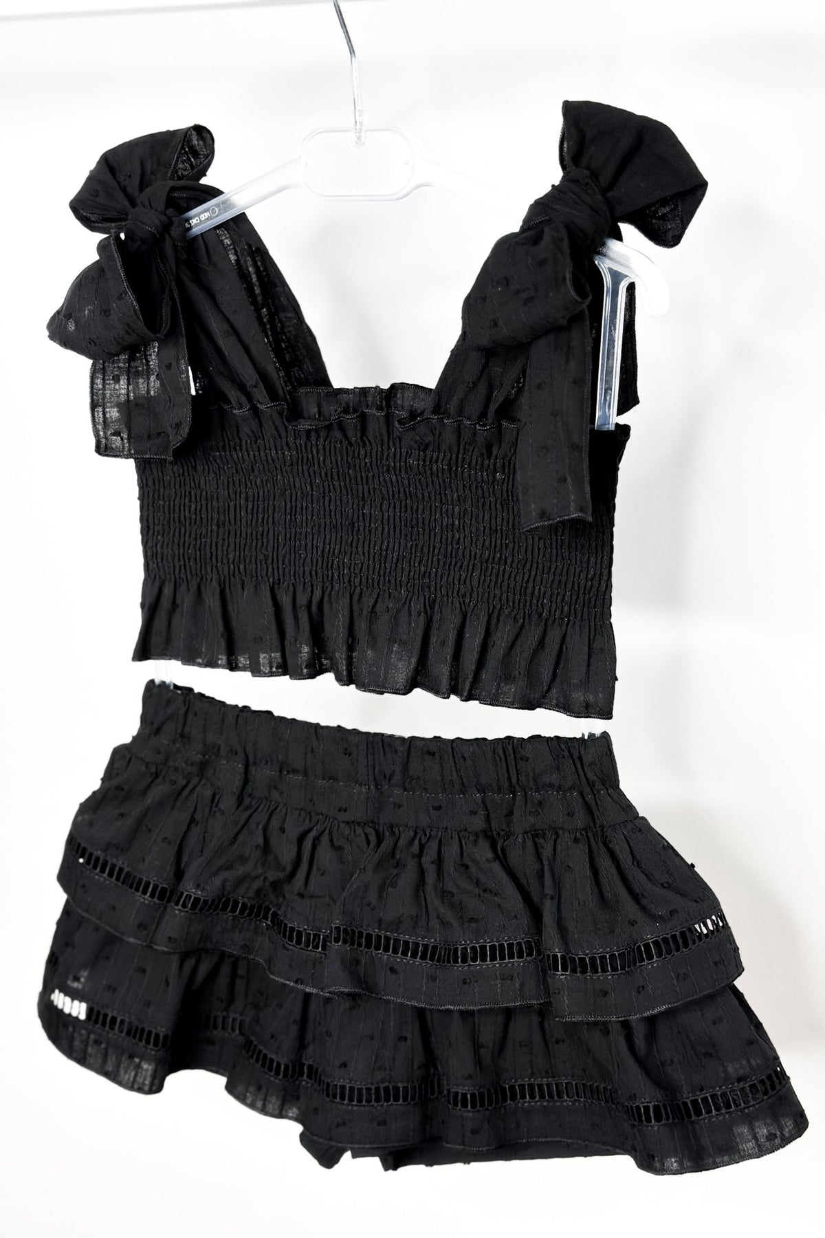 "Sabrina" Black Plumeti Dot Crop Top & Skort