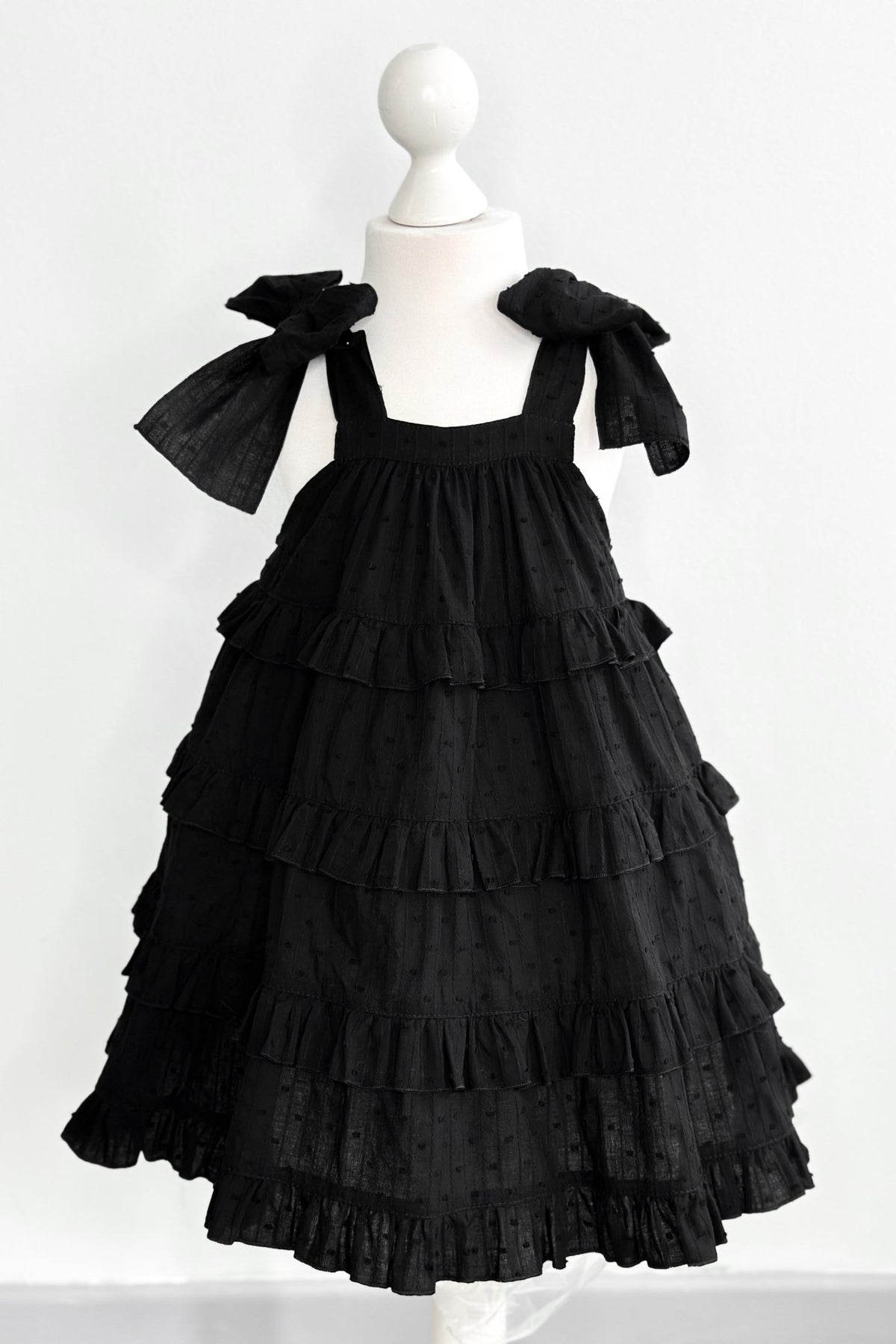 Cool, comfortable, and impossibly chic – this Phi Clothing sundress is a summer dream. Made from soft black plumeti dot cotton, it falls in playful tiers finished with fluttery frills that move beautifully with every step and twirl. The wide straps tie into pretty bows on the shoulders, adding a sweet, adjustable touch. Lightweight and breathable, it’s the kind of dress she’ll want to wear all season long – from sunny days out to those spontaneous park picnics.