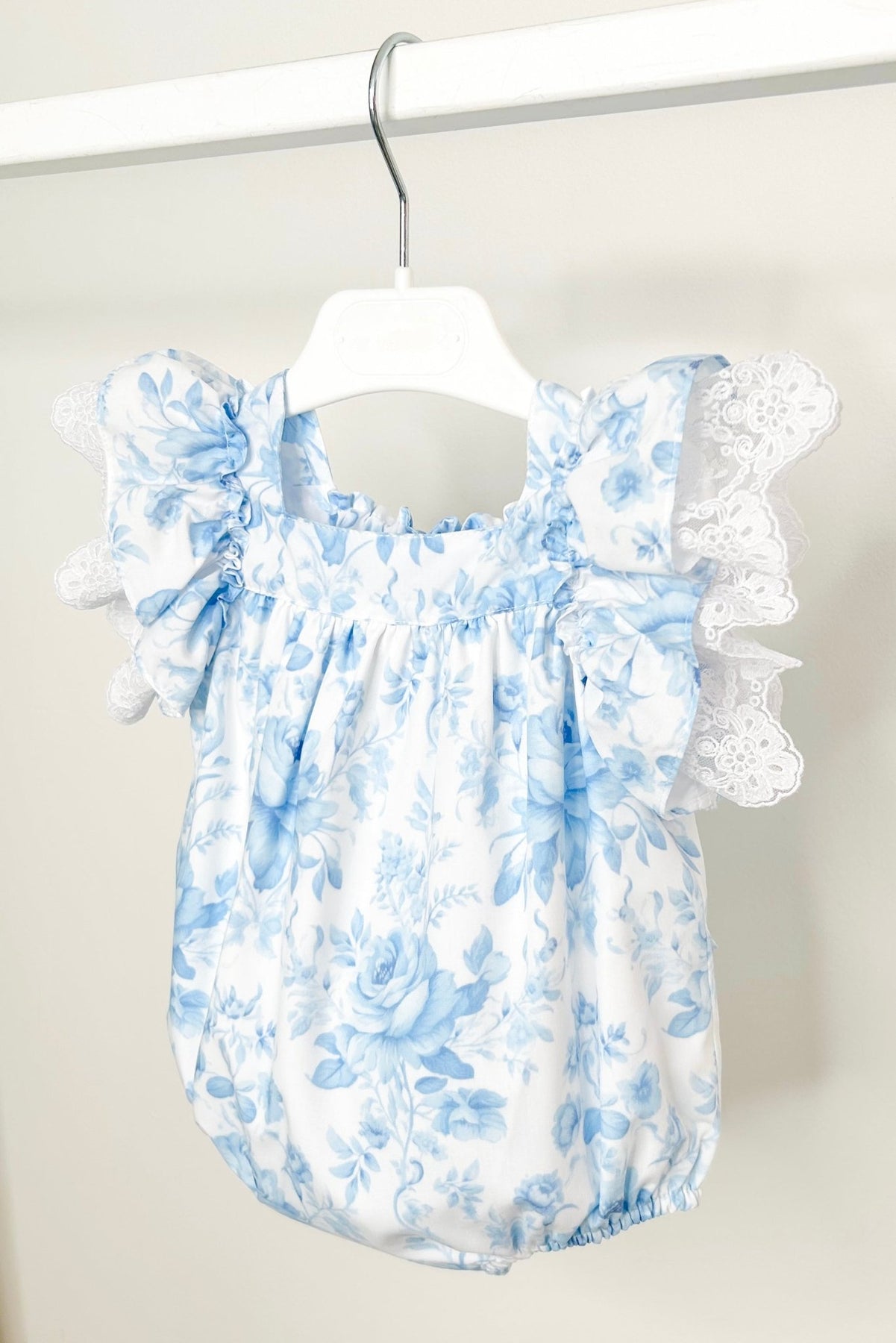 Delicate and dreamy, this blue and white floral romper from Fofettes x Be Chic is an absolute showstopper! The silky-soft cotton fabric feels like a gentle caress against your baby’s skin. Featuring a lovely lace overlay on the sleeves and finished with an adorable, extra-large bow at the back, this romper combines elegance with playful charm. The romper also boasts an elasticated back and legs for extra comfort and easy dressing. The luxurious mother-of-pearl button fastening to the crutch adds a refined touch. A perfect piece for any special occasion or sweet everyday moments.