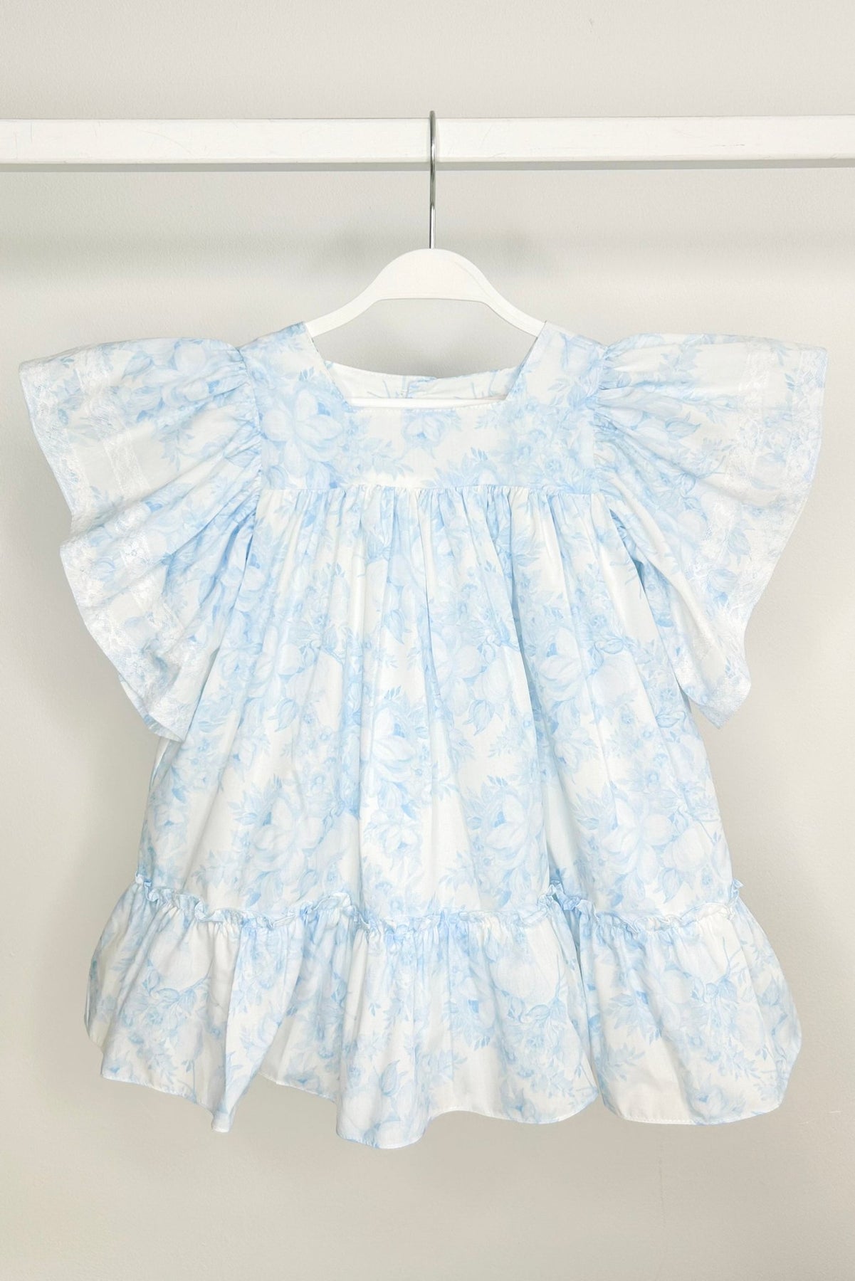 "Persephone" Blue Floral Butterfly Sleeve Dress