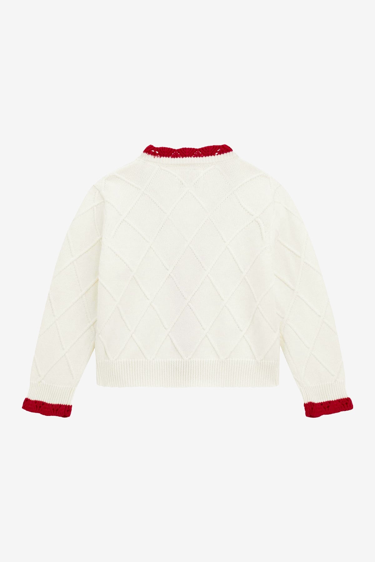 "Tansy" Ivory & Red Embroidered Cherry Cardigan