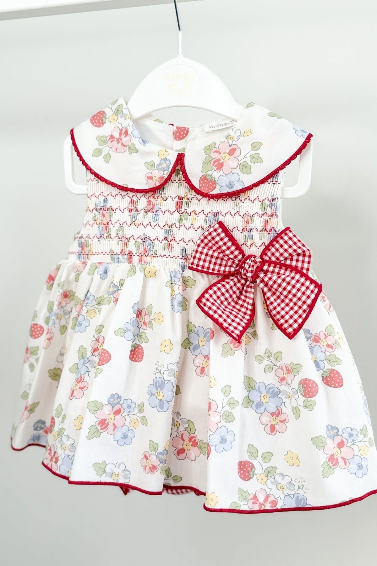 Paired with matching red and white gingham bloomers, designed with an elasticated waist and legs, this is one of those outfits that feels just as perfect for special occasions as it does for sunny everyday moments.