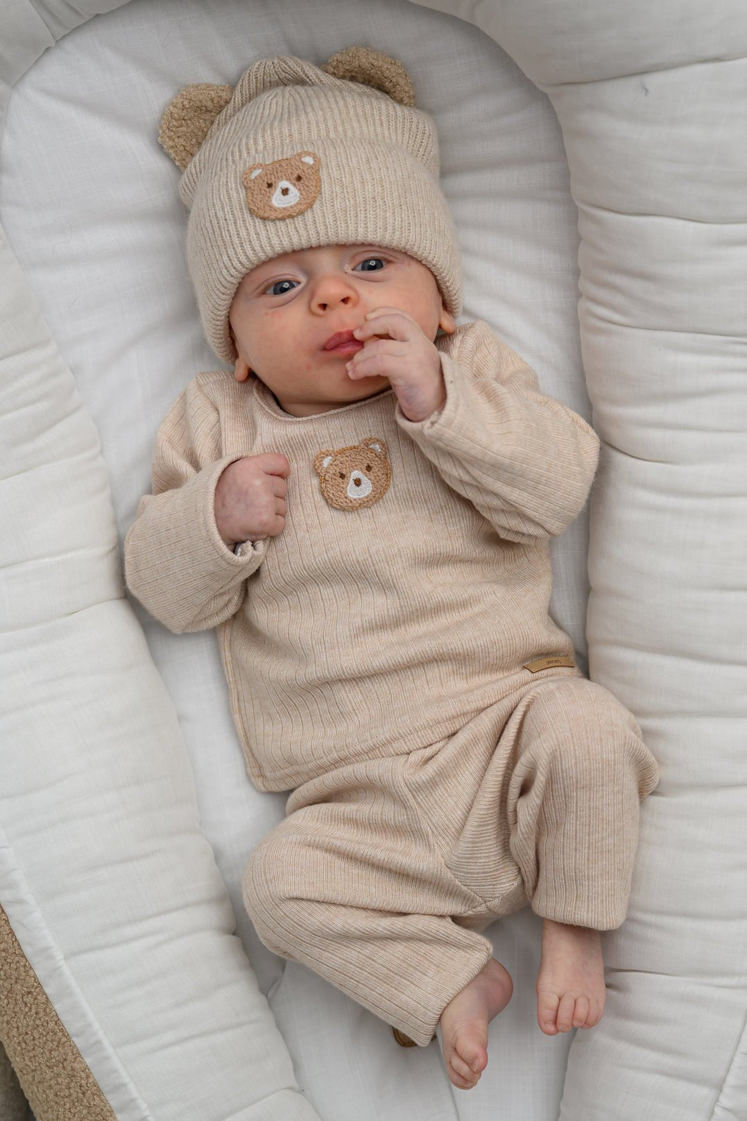 Unisex loungewear set from Polish brand Jamiks. Super soft, stretchy, lightweight ribbed top and leggings set, finished with an adorable 3D teddy bear head appliqué to the chest.